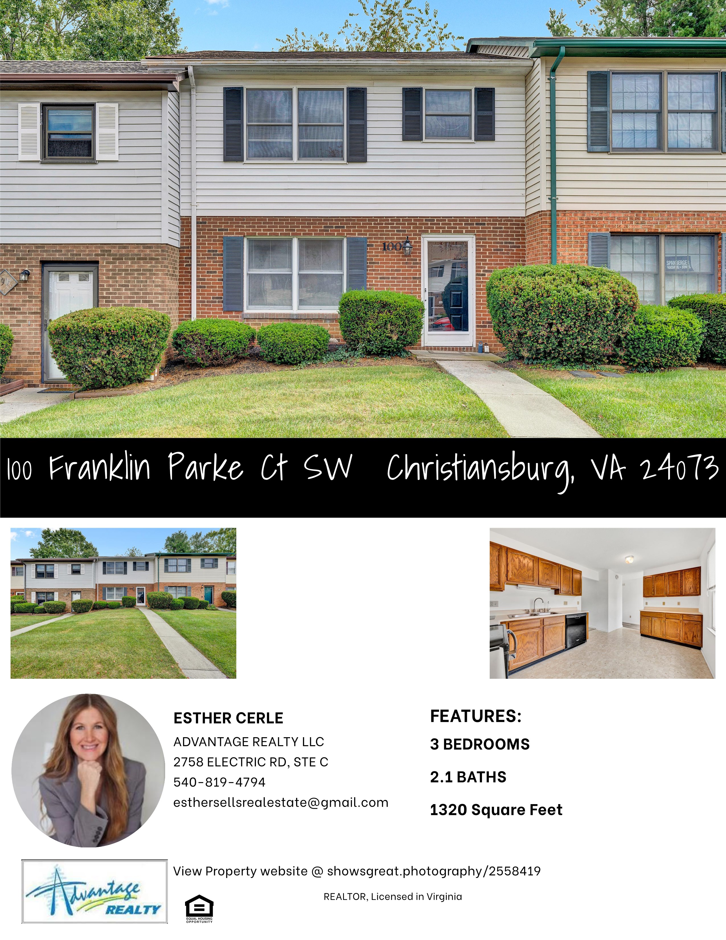 This 3-bedroom, 2.5-bath townhouse is move-in ready with freshly painted interior and brand new LVP flooring throughout the entry and upper levels, no carpet. The kitchen features stainless steel appliances and a brand new refrigerator. Large open concept living room and dining area that steps out to the private patio for some outdoor relaxation. With the HOA handling exterior maintenance and snow removal, you'll enjoy true low maintenance living. Schedule your showing today and make this beautiful home yours! Information is sourced from the County GIS and is the responsibility of the Buyer and their agent to verify. Elementary School: Falling Branch Middle and High School: Christiansburg.