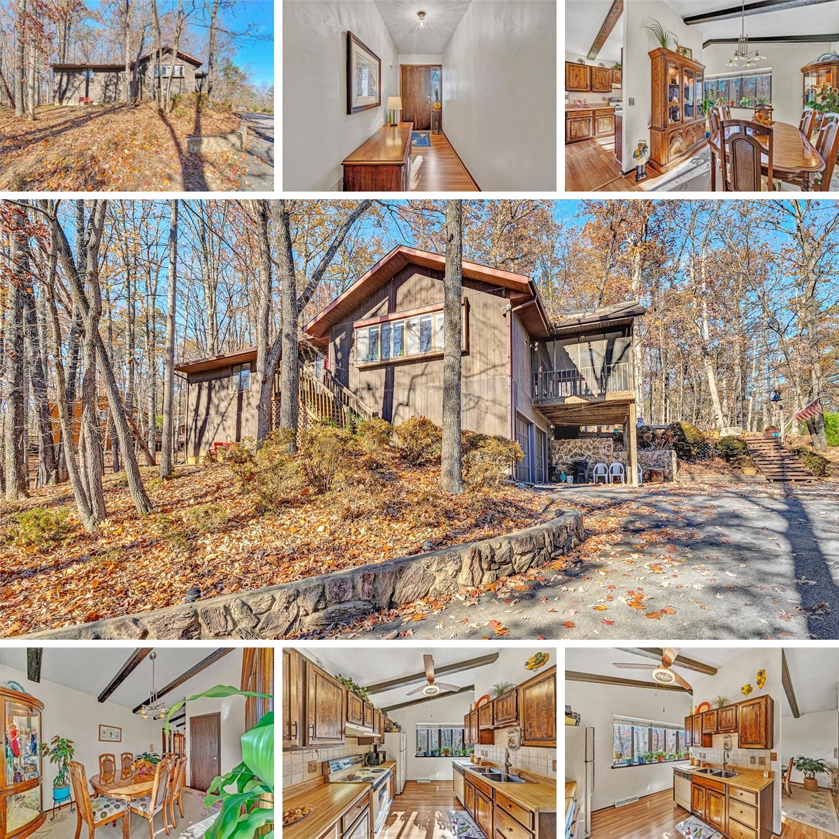 Completely Private {Like Living in a Tree House} Contemporary Ranch on a Total Wooded 1 Acre Lot. Cathedral Ceilings in Great Room w/ Wood Beamed Accents and Gas Fireplace. Cathedral Beamed Ceiling in Kitchen & Dining Room. 3 Bedrooms and 2 Full Updated Baths on Main Level. New Vanities, Toilets, Mirrors, Lighting and Tile Floors. Truss System (No Walls) in Lower Level for Future Expansion for a Huge Family Room or Multiple Rooms if Desired. 10 x 20 Covered Screened-In Porch off Kitchen Overlooking Mountain Views. Multiple Decks: 10ft x 30ft including a Covered Pergola with Reinforced Decking for Future Hot Tub,(if desired). New Updated Insulated Glass Inserts in All Main Level Windows Installed 2021.