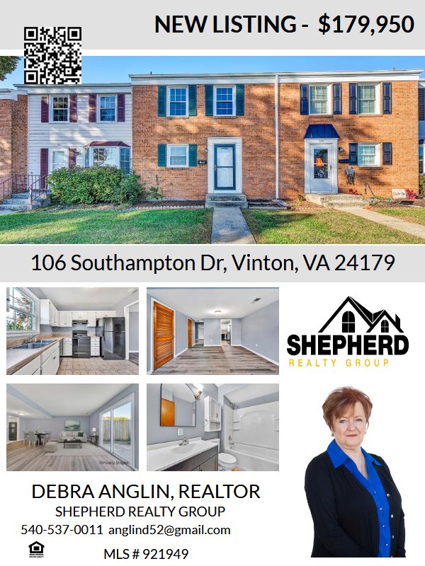 Great Location convenient to all Vinton has to offer. Restaurants, Grocery Stores, Shopping, Schools, and more. This brick 2-story townhome features a new front door and storm door opening into a tiled foyer, eat in kitchen with newer stove, refrigerator and dishwasher, dining area, large great room with new flooring and new patio doors leading to a fenced patio and utility room with washer/dryer hook-up. Main level also features a half bath with a new vanity. Upstairs features a large primary bedroom with 2 closets, 2 secondary bedrooms, a full bath with new vanity and accessories. Steps and upstairs also has new flooring. HOA takes care of outside maintenance, mowing and snow removal. There is a clubhouse available to rent and a swimming pool for those hot days!
