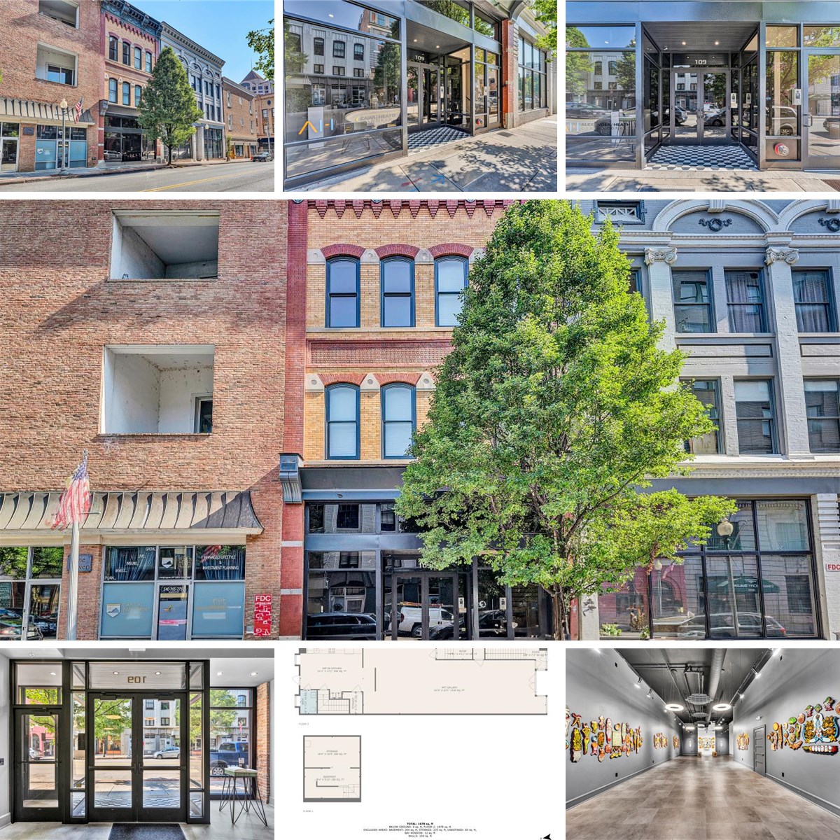 Extensively updated building w/ extremely high-end materials & great views. Recently used as an art gallery & Airbnb w/ two dwelling units. Entry level features former art gallery w/ full size kitchen-plywood from floor to ceiling for easy hanging of artwork. Two residential units upstairs, each decorated as two bedrooms w/ Wolf gas stove, Cove dishwasher, sub zero fridge, large primary suite w/walk in shower & closets. Custom made cabinetry throughout. Complete renovation w/windows, flooring, HVAC, poplar trim, electrical & plumbing. $100,000 of furniture negotiable. Top of the line railings & staircases. Move in ready as compared to extensive time & funds for a renovation of another downtown property. Rubber roof. Sq. footage identifies total sq. footage for the two residential units.