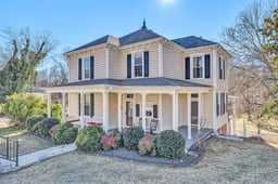Longing for a charming 2-story Victorian home on a large lot with a fountain and a waterfall? The Primary bedroom is entry level, if you choose. Newer shutters, fretwork and siding! A wrap-around porch for quiet evening chats. There is also a private dining deck. Deck ceilings have PVC beadboard for maintenance free summers. The 2018 Roof has a delightful decorative lightening rod on top, A Heat pump w/ gas backup was installed in 2021. Quiet tilt-in thermal windows, 2 fireplaces and decorative mantels are seen throughout the home. Save time for swinging on the lower deck this spring. Public water and sewer. Appliances stay. Lots of storage in the store room below the deck and in the walkout partial basement. This home reminds you of the St. Louis World's Fair homes of the early 1900s!