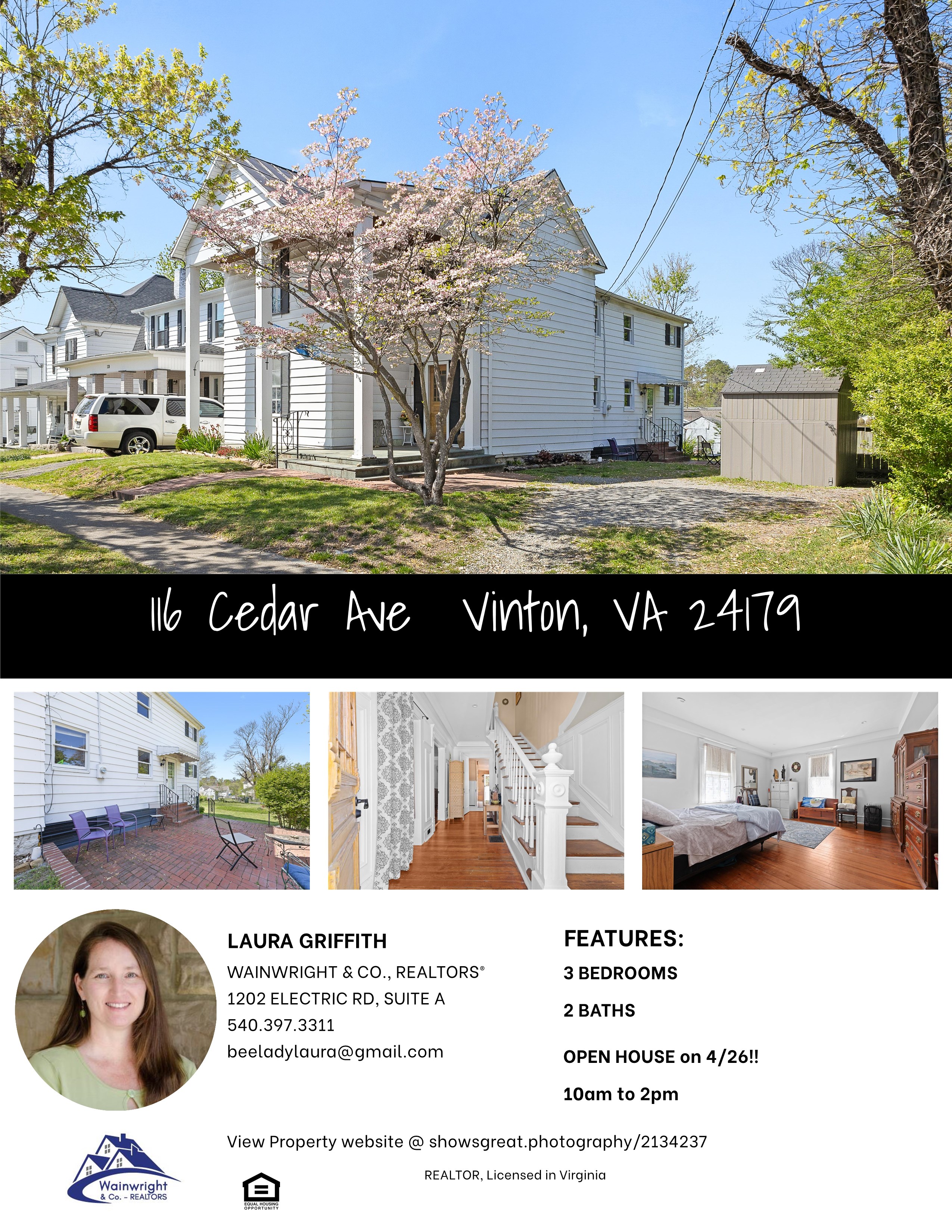 This architectural gem blends historic charm with modern comforts, offering a rare opportunity to own a piece of Virginia's heritage. Original hardwood floors, classic crown molding, and a staircase that whispers stories of the past. Plus a potential small mother-in-law apartment featuring a cozy kitchenette and private bathroom—ideal for guests, extended family, or rental income. LOCATION! Stroll to downtown Vinton's shops, restaurants, and festivals, with top schools and parks nearby for family fun.
