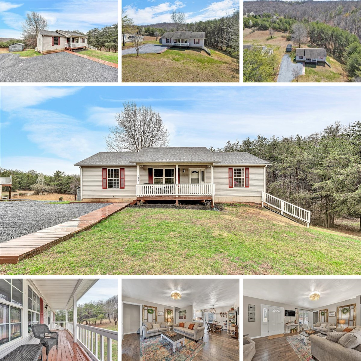 Welcome to this charming 3-bedroom home, thoughtfully decorated and utilized as a 4-bedroom, offering flexible space for family, guests, or a home office. Situated on a beautiful 1.68-acre lot, this property provides the perfect balance of privacy and convenience. Enjoy peaceful mornings on the covered front porch and relaxing evenings on the back deck overlooking the spacious yard. Inside, the home features new flooring, fresh paint, and new carpet, along with updated kitchen countertops, a new sink, refrigerator, and oven. The bathrooms have also been refreshed with new countertops and sinks. A large basement offers plenty of room for relaxing, recreation, or additional storage. The home also features a brand-new HVAC system with new ductwork in the basement. Outside, a small shed is perfect for chickens, tools, or lawn equipment. Conveniently located just minutes from Smith Mountain Lake, with easy access to golf courses and public boat launches, this property offers both comfort and lifestyle.