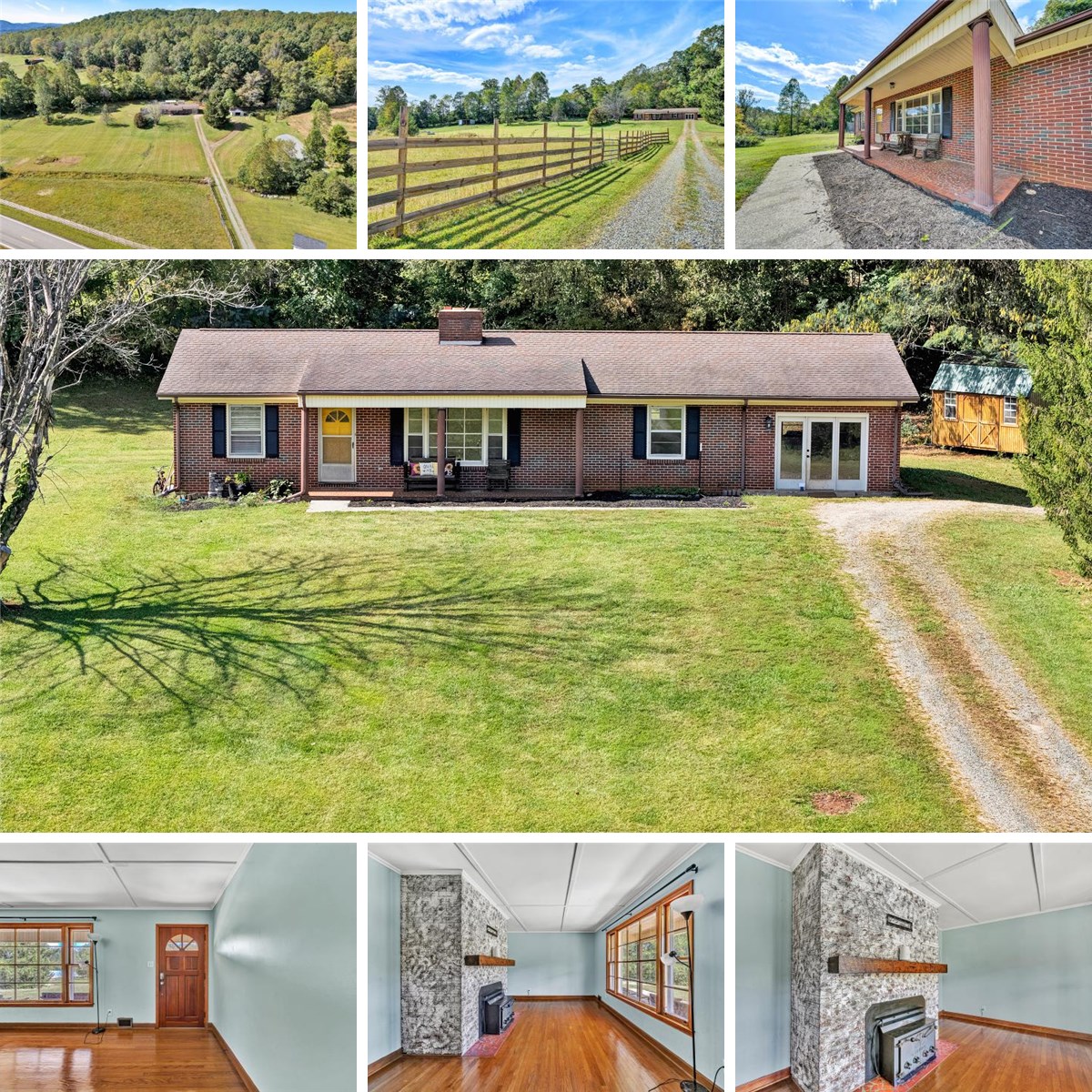Enjoy country living with this charming mini farm on 4.29 acres in Ferrum! Bring your horses, cows and chickens. A small pasture is ready with a shelter and creek. Additional features include a chicken house, greenhouse, 12x20 storage building with loft, fruit trees, a small pond and a high tunnel. A detached garage/workshop also offers ample space for additional vehicles, storage, tools and projects. The brick ranch offers rural charm with 3 bedrooms and 1 bathroom. Interior features include a spacious kitchen with plenty of cabinets, dining area, living room with beautiful masonry fireplace and family room. A full, unfinished basement offers storage galore and is ready for your personal touch!