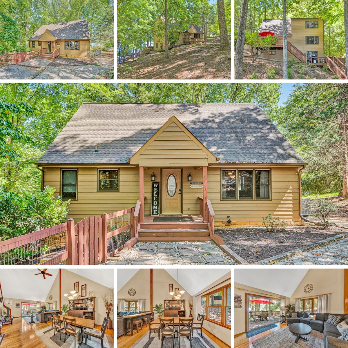 Custom built waterfront home ideally situated in a fantastic lake location by both road & water. Tucked in a deep water cove near channel marker C-3, boasting stunning lake, mountain & sunrise views across the highly desirable Cradock Creek section of Smith Mountain Lake. Being sold Turn-key; the entry level features a large kitchen, dining area & great room w/ vaulted ceiling, the primary lakeside bedroom & a full bathroom. Upstairs, an open loft overlooking the great room leads to two guest bedrooms & a full guest bathroom. The lower level offers a full 2nd kitchen, a lakeside family room, a full guest bathroom, laundry, & a bonus room that is currently decorated as a 4th bedroom. Lakeside decks are accessible from both the great room & family room. A boardwalk connects the lower deck to the single-slip dock, which includes a covered boat slip, party deck, & floater. The property also features a nice fenced pet area just off the side of the home & a large circular driveway with ample parking. A complete Smith Mountain Lake waterfront package, perfect for full-time living or a vacation retreat.
