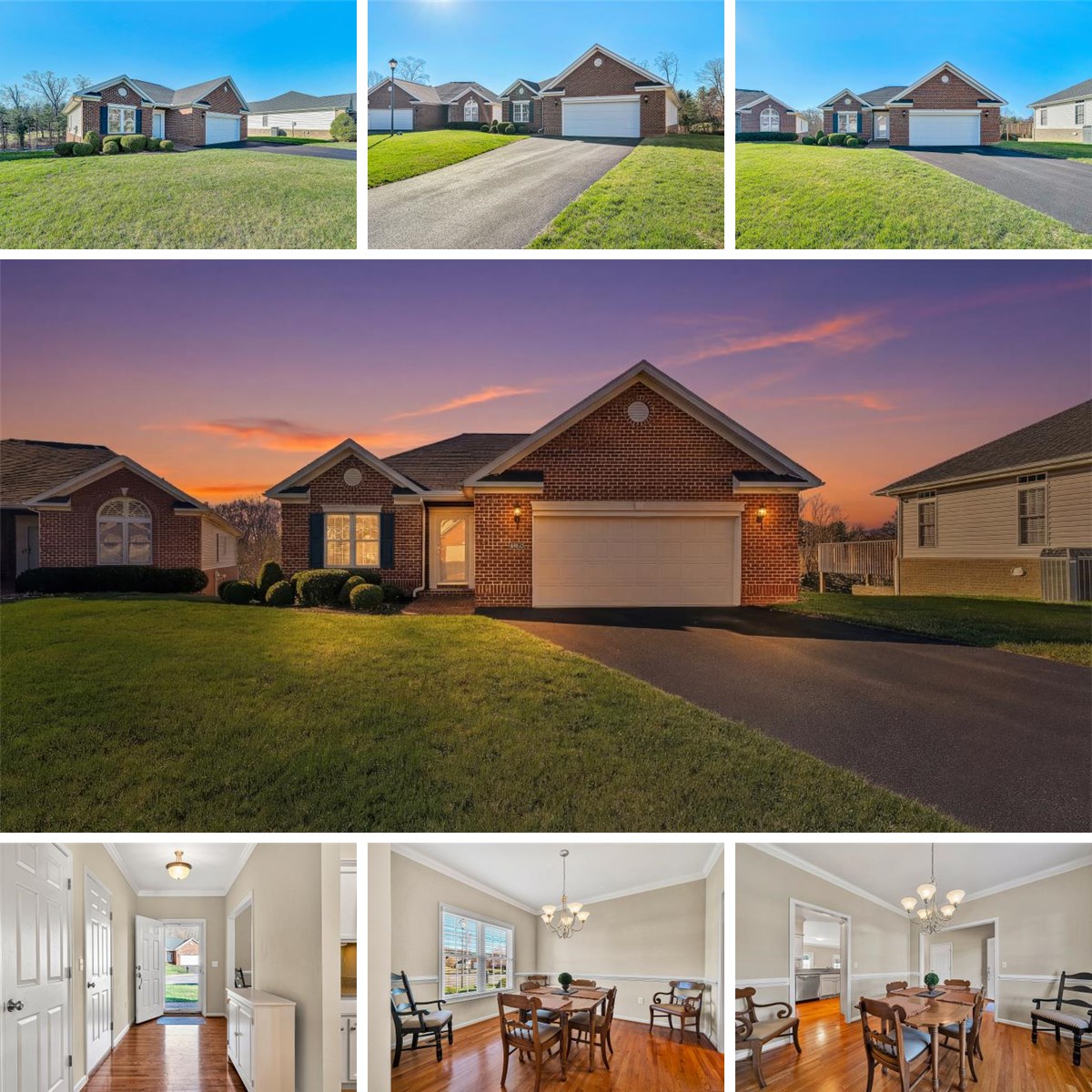 Enjoy low-maintenance living in this beautiful brick patio home located in the desirable Fairways at Hanging Rock community in Salem. Hardwood floors flow throughout the main level, featuring a bright family room with a cozy gas log fireplace and access to a living-level deck—perfect for morning coffee or evening relaxation. The home offers 9-foot ceilings and all appliances convey, including the stainless range, dishwasher, microwave, refrigerator, washer, and dryer. The full unfinished walk-out basement provides incredible potential to nearly double the living space. It is already framed for additional rooms and roughed-in for a third bathroom, ideal for a future guest suite, family room, or hobby space. Low-maintenance brick and vinyl exterior plus HOA dues of $165/month include lawn care, shrub trimming, and snow removal. Conveniently located near Hanging Rock Golf Course with quick access to I-81, Roanoke, and Blacksburg, while remaining close to shopping and dining. Taxes, square footage, and lot size are estimated from Roanoke County GIS. Buyer and buyer’s agent should verify all information.