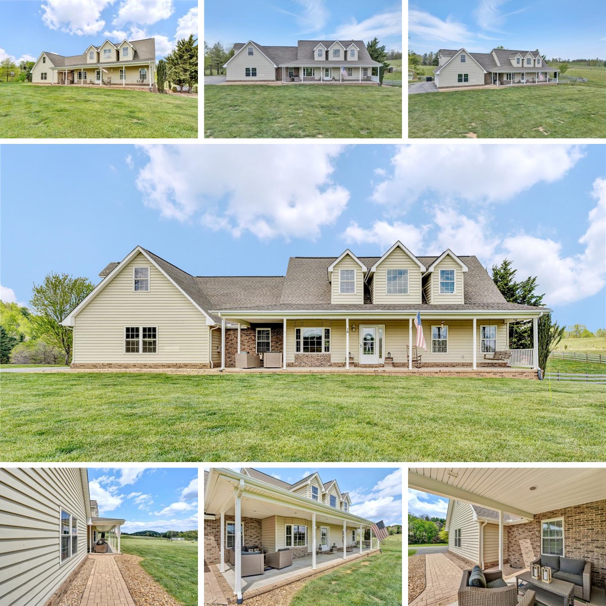 Refined country living in the heart of Floyd County. Set on 4.4 picturesque acres with sweeping mountain views, this Cape Cod offers privacy, tranquility, and exceptional curb appeal. Ideal for a mini farm, the property features fencing, barns, two pasture areas, and a storage shed. Inside, vaulted ceilings and abundant natural light create an airy, elegant feel. The main level includes two bedrooms, while the upper level offers two additional bedrooms plus a versatile loft. The finished basement provides a spacious rec or fitness room. Enjoy peaceful mornings on the covered front porch overlooking rolling countryside. A rare opportunity to own a serene, well-appointed retreat in one of Floyd County's most scenic settings.