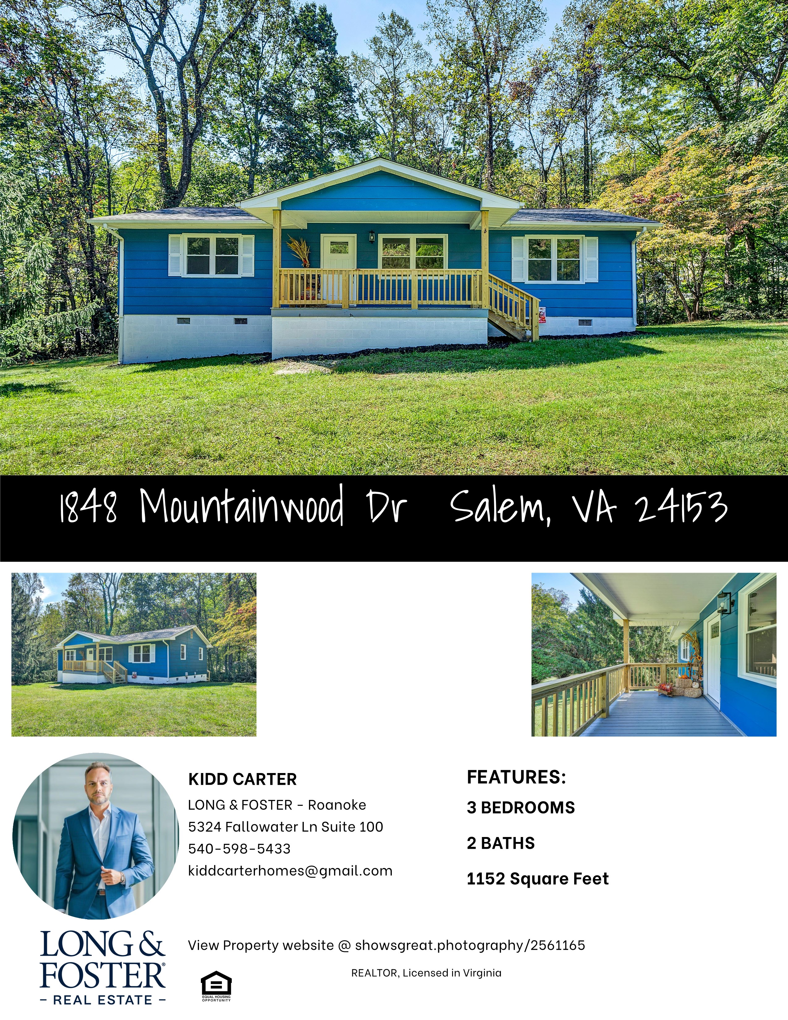 NESTLED IN THE MOUNTAINS OF WEST ROANOKE COUNTY IN SALEM IS THIS ADORABLE ONE LEVEL HOME ON ALMOST AN ACRE OF LAND. DEER AND OTHER WILDLIFE IN YOUR BACK YARD IS A COMMON SIGHT! THIS HOME WAS COMPLETELY GUTTED AND REMODELED WITH ALL NEW EVERYTHING. ROOF, WINDOWS, HVAC, EXTERIOR AND INTERIOR PAINT, NEW 10K DECK ON THE BACK, 2 NEW BATHS, ALL NEW KITCHEN AND APPLIANCES, FLOORING, LIGHT FIXTURES AND EVERYTHING ELSE YOU CAN THINK OF. WITH A WOODED SURROUNDING, IT'S THE PRIVACY YOU'VE BEEN WAITING FOR! JUST A 2 MINUTE DRIVE TO H.R. GOLF COURSE. WELCOME HOME TO SALEM!