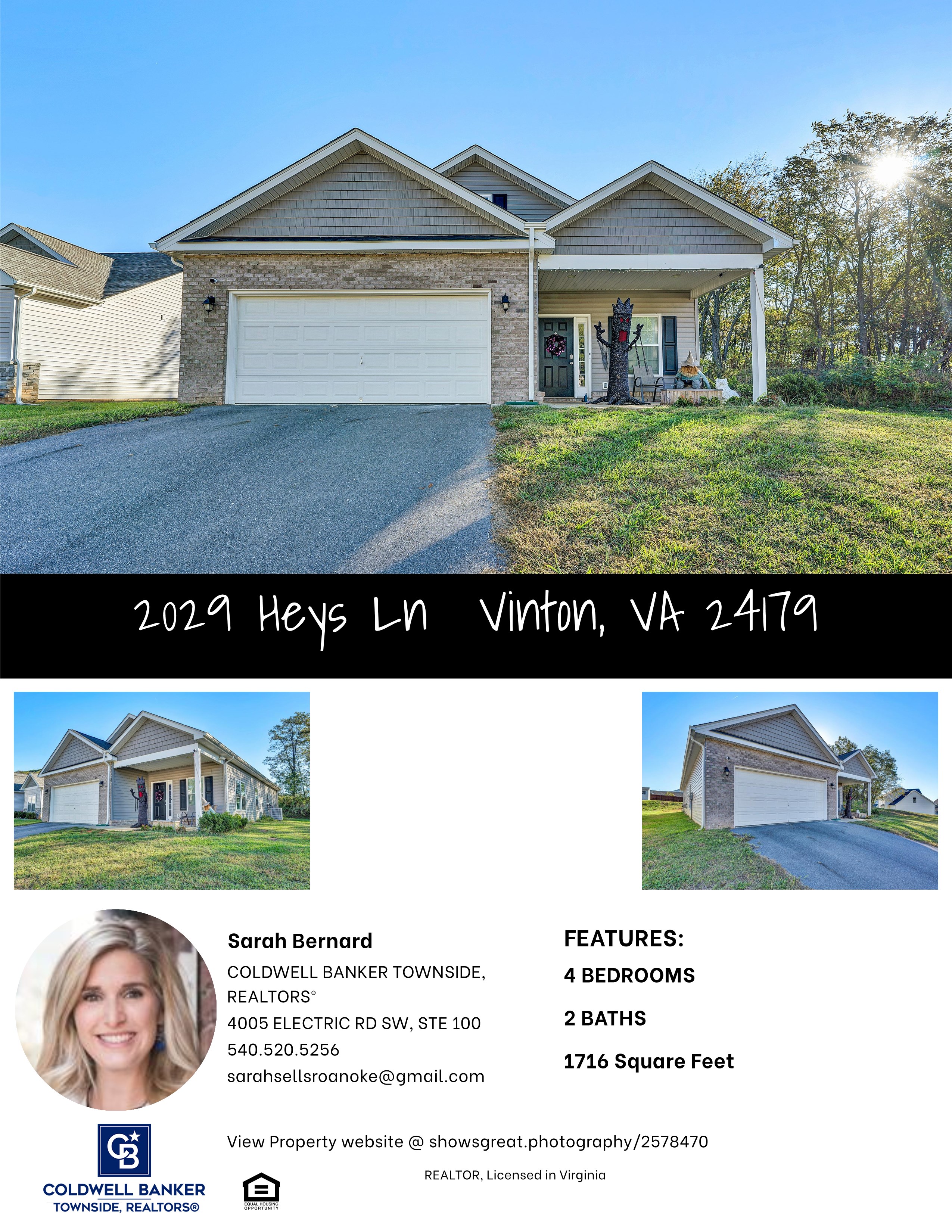 You do not want to miss out on this one level living opportunity! Home features four bedrooms and two baths, open floor plan and Pergo floors throughout the kitchen and living room. The kitchen features premium Tahoe cabinets and cultured marble countertops. Home also boasts an extra room over the garage that is very close to being finished, which would be great for an office, playroom or workout room! This home is in a very desirable neighborhood and close to the Vinton greenway!