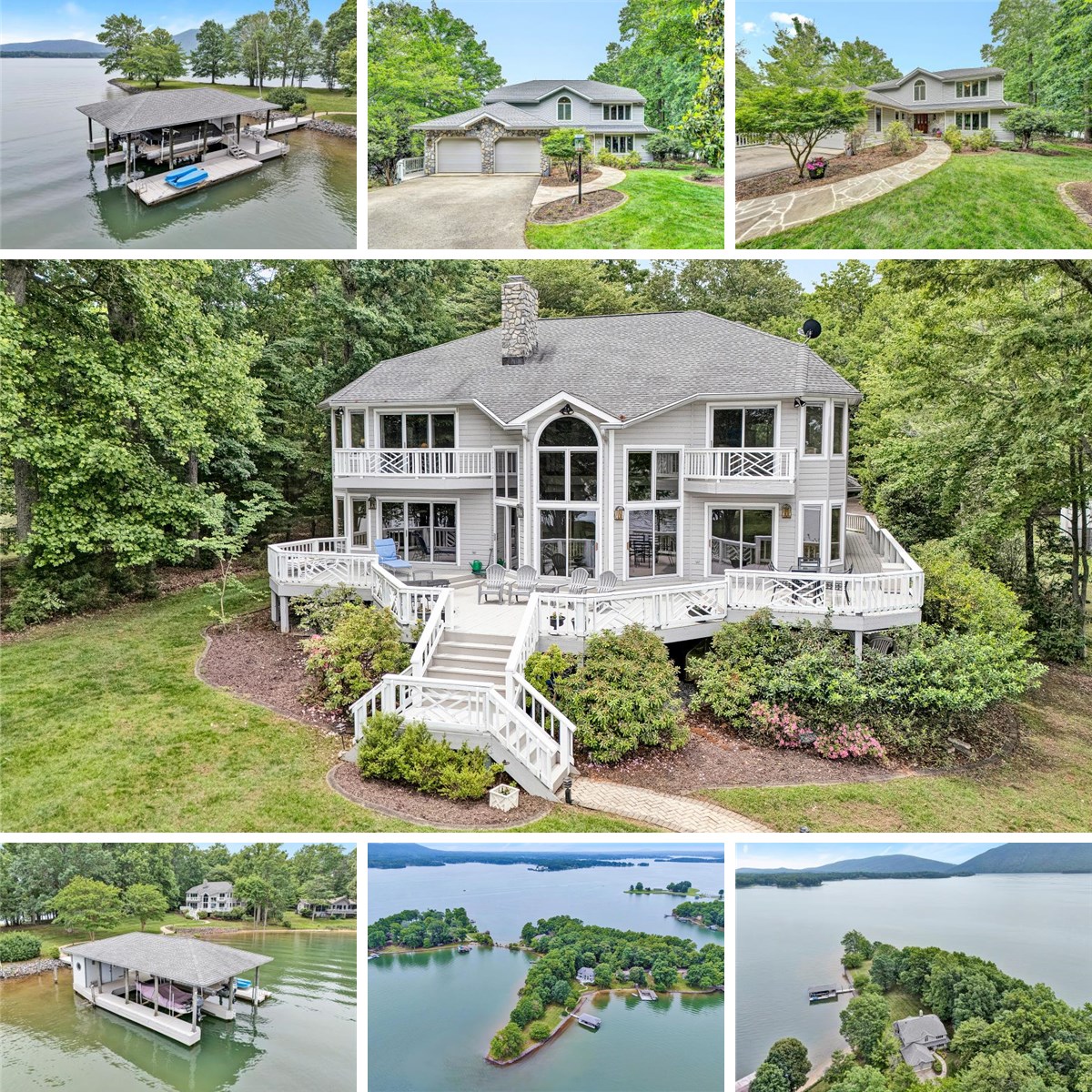 Luxury Lakefront Living-Custom-Built by Phil Floyd, Floyd Enterprises. Enjoy breathtaking views of Smith Mountain, Craddock Creek and the lake from this stunning custom home. Quality features include vaulted ceilings, a double-sided stone masonry fireplace with gas logs in the great room and den area offering peaceful views of the water-perfect for unwinding. Spacious open kitchen with sleek quartz countertops, wine fridge, abundant cabinetry, and a generous island which continues into the waterfront Dining area. The main level primary suite is a true sanctuary, featuring a luxurious ensuite bath and walk-in closet. Upstairs, family and friends will feel at home with four additional bedrooms and two full baths. Lower level has a family room for your enjoyment and additional storage.