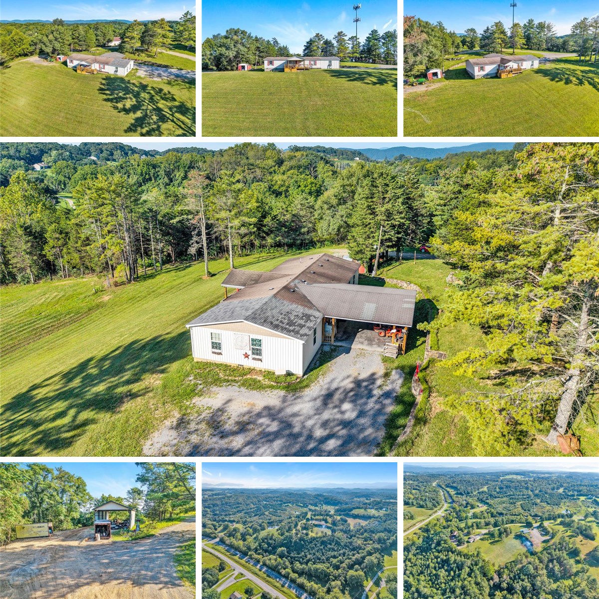 16.99 Acres with incredible panoramic views. Creek and small pond area along front of property near the 220 frontage that makes for a perfect picnic spot. 2001 doublewide with 4 bedrooms, 2 baths, and an attached carport and stick-built master bedroom addition, 26 x 40 detached metal carport perfect for farm equipment or RV, beautiful rolling hills. The potential is endless with this property. Mostly cleared but enough trees to create the privacy you desire.