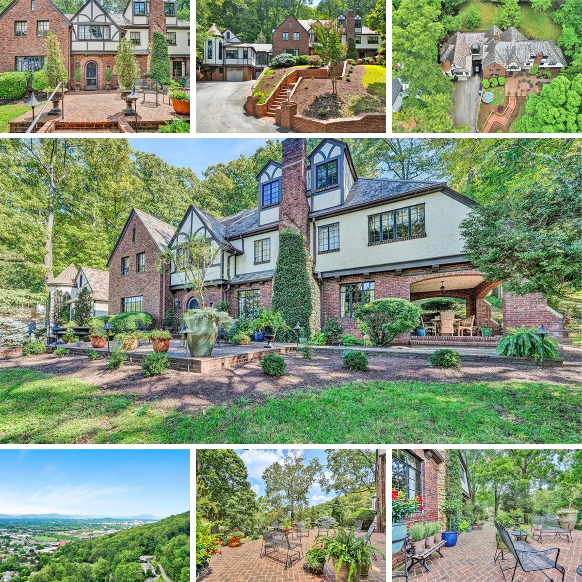 Renovated 1920's Tudor in South Roanoke with incredible views of the Blue Ridge Mountains and the Roanoke Valley. This house is located just a few blocks from Carilion Hospital, Greenway walking/biking trail along the Roanoke River, wooded hiking trails, and commercial district of South Roanoke which offers shops, stores, and restaurants. On entry this home boasts with unique character and charm but offers all the modern amenities one could wish for like a gourmet kitchen, first floor Primary Suite as well as a second upper level Primary Suite, elevator, two laundry rooms, custom wall coverings, and updated bathrooms. The brick patio off the front of the house captures the views and offers fantastic outdoor living space. Enjoy the privacy of two lots well over an acre in size. New slate roof, new appliances, new generator.