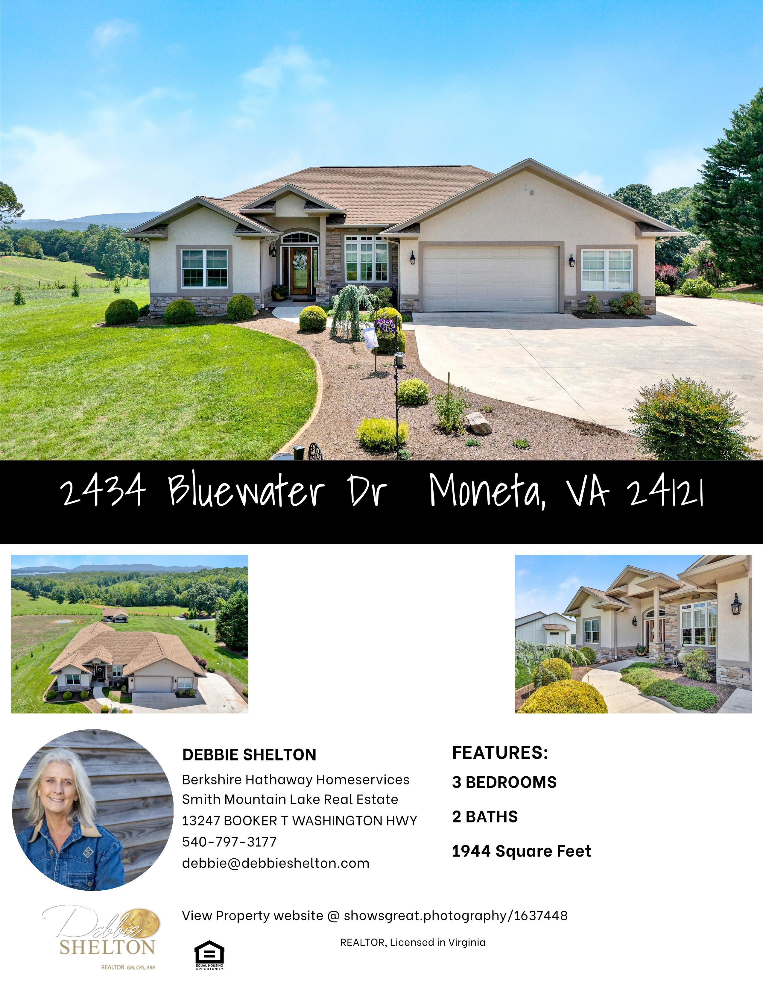 Superbly constructed one level home, high quality finishes, nearly maintenance free and energy efficient! Spectacular views of Smith Mountain and the lake. Incredible must see outdoor living areas that include a kitchen and wood burning fireplace. High points include Dryvit and stone exterior, 2x6 sturdy wall construction with R19 insulation. Climate-controlled crawl space, concrete driveway, oversized 2 car garage and commercial gutters and downspouts. Interior is equally as impressive with 1 step entry, Anderson 200 series windows, granite counter surfaces, GE Profile appliances, Navian tankless hot water and a water softener system with whole house filter. Dual zoned HVAC and 22k whole house generator with 1000 gallon propane tank. Come and see!