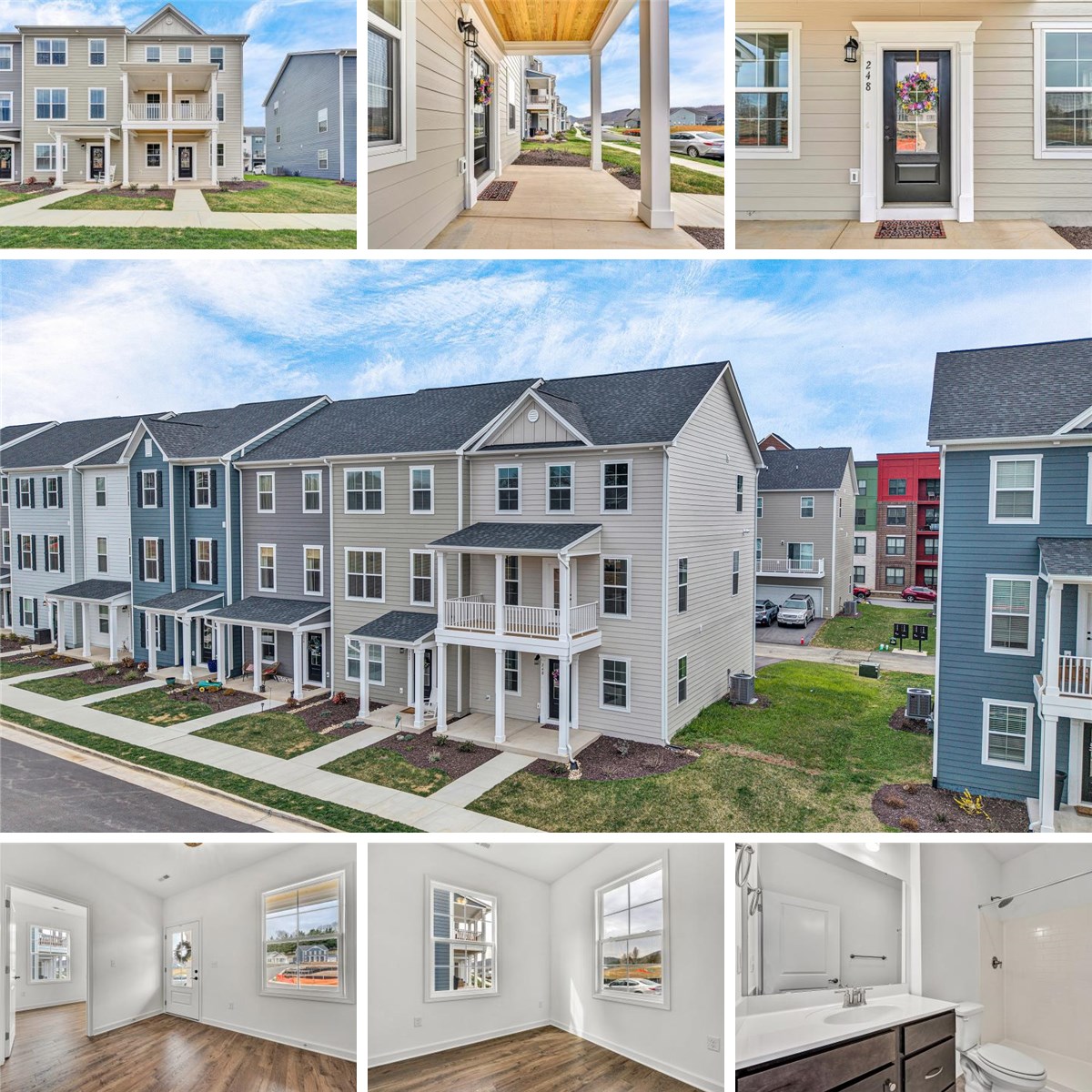 Like-new construction built in 2025 and never lived in! This beautifully designed home offers modern finishes and a functional layout in the sought-after Daleville Town Center community. The gourmet kitchen features quartz countertops, under mounted stainless sink, tiled backsplash, stainless steel appliances, and a large island--perfect for entertaining--plus an office area just off the kitchen. Enjoy wood floors, stylish modern lighting, and two porches (including one covered) for outdoor living. Upstairs, you'll find a spacious primary suite with a walk-in closet and a private bath with tiled shower and floors, along with two additional bedrooms, a full bath, and convenient laundry. The finished basement adds even more living space with a 4th bedroom and 3rd full bath--ideal for guest or a private retreat. Complete with a 2-car garage and located within walking distance to shops, restaurants, and the YMCA, this