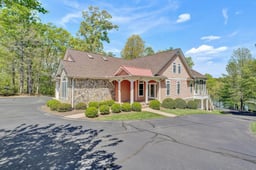 Expansive custom-built waterfront home perfectly situated near Smith Mountain & the Dam, in one of the lake's most desirable locations. Including a grand double slip dock in one of the deepest & cleanest sections of the lake, near channel marker W-1. Thoughtfully designed & ideal for entertaining, this impressive residence functions beautifully as either a full-time home or luxurious vacation retreat & is being sold w/ most furnishings & contents. Decorated as five bedrooms w/ four full bathrooms, two half bathrooms, a bonus room over the garage, two kitchens, two laundry rooms, & two garages-this home offers space, versatility, & comfort in every detail. The main level features a chef's kitchen w/ large island, prep sink, dual dishwashers, gas range w/ commercial hood & stacked oven/microwave combo. Just off the kitchen, the spacious great room boasts tray ceilings & custom built-in, opening onto both an expansive lakeside deck & a screened outdoor living area complete w/ custom cabinetry & beverage refrigerator, perfect for entertaining year-round. A private primary suite is conveniently located off the kitchen & offers direct access to the main-level laundry room. Two guest bedrooms, a full guest bath, a half bath, & an attached two-car garage complete the entry level. Upstairs, you'll find another generous guest bedroom, a half bath, & a large bonus room situated over the garage, ideal for a home office, bunk room, or recreation space. The walkout lower level has stamped concrete flooring & includes a second full kitchen featuring custom cabinetry, island, wet bar, beverage refrigerator, & commercial ice maker. This level also offers a spacious lakeside family room w/ custom built-in, a lakeside guest bedroom w/ en-suite bathroom, a second laundry room, another full guest bath, a large workshop or hobby room, & a second garage that opens directly onto an expansive lakeside stamped-concrete patio. The patio is mostly covered for shaded relaxation & also includes an open section w/ a hot tub. A paved circular driveway wraps around the home, connecting an additional parking area to the patio & providing a paved pathway leading directly to the lake. Completing this remarkable property is a showpiece double slip dock constructed w/ steel pilings, featuring an oversized 26' slip w/ a 10,000 lb. lift, extra-wide 30" catwalks, a dock house w/ roll-up window & serving counter, a large open deck area, weatherproof floating dock w/ two connecting Sea-Doo ports, & tall ceilings w/ custom lighting, creating an exceptional lakeside entertainment space. A brand new roof was installed on the home and the dock in 2026. Set on a large, landscaped corner lot with engineered drainage in a sought-after community offering paved roads, public water, boat ramp, and gated trailer storage, this home perfectly blends luxury, craftsmanship, & lakeside living.