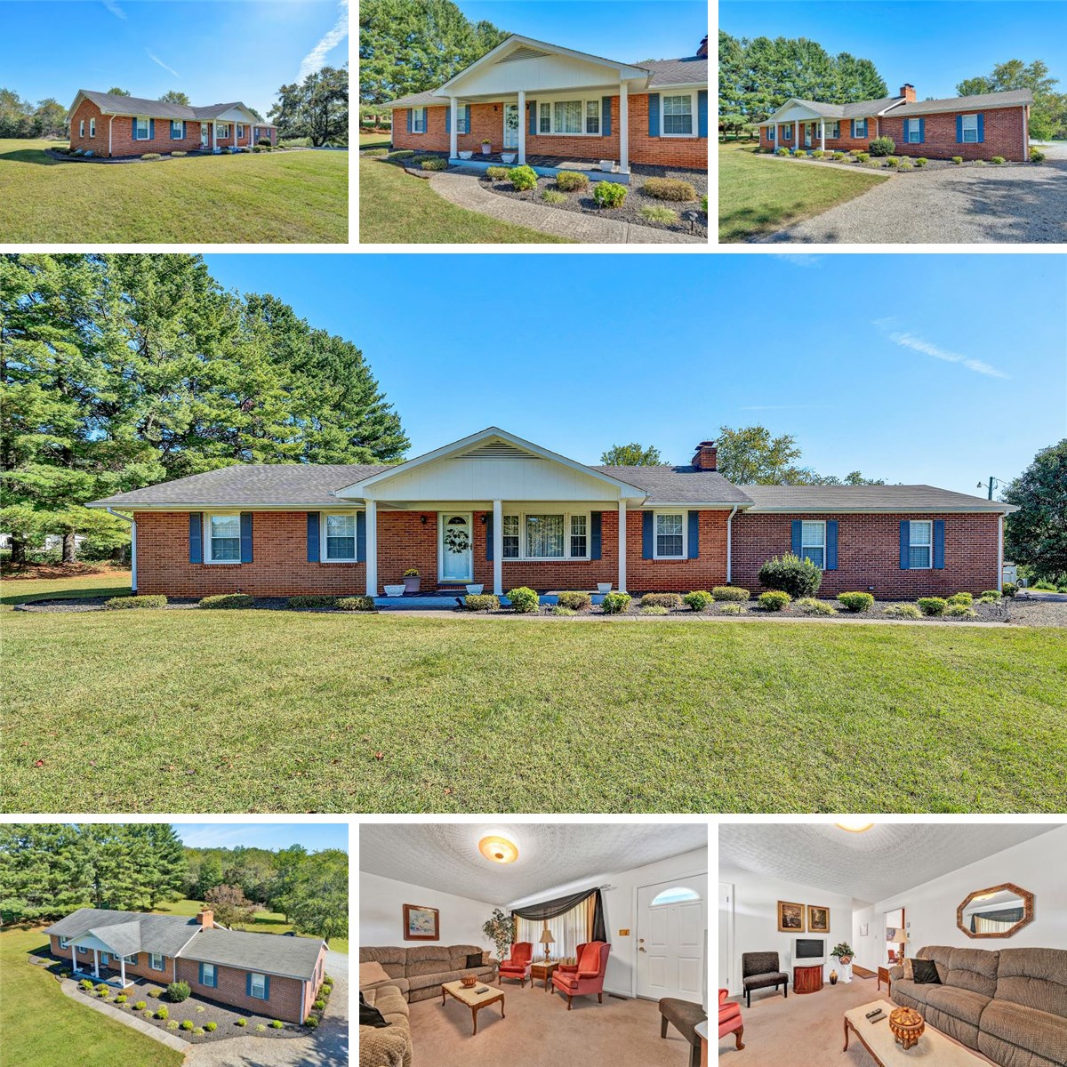 BRICK RANCH w/2.73 gently sloping acreage, Zoned A1-Only 10 minutes to Roanoke, walking distance to Boones Mill Elementary. 3 bedrooms 2 & 1/2 baths, Family room w/ masonry fireplace w/ wood stove insert. Kitchen/dining area w/ new LTV flooring. Formal living room, 2 guest bedrooms, primary bedroom/bath. Lower-level family room w/masonry fireplace, nice finished area (former hair styling area) w/1/2 bath. Laundry room and plenty of storage. Attached 2 car garage: 25x25, 7x20 covered front porch, 12x16 patio & 7x24 patio. Detached storage building w/concrete floor.