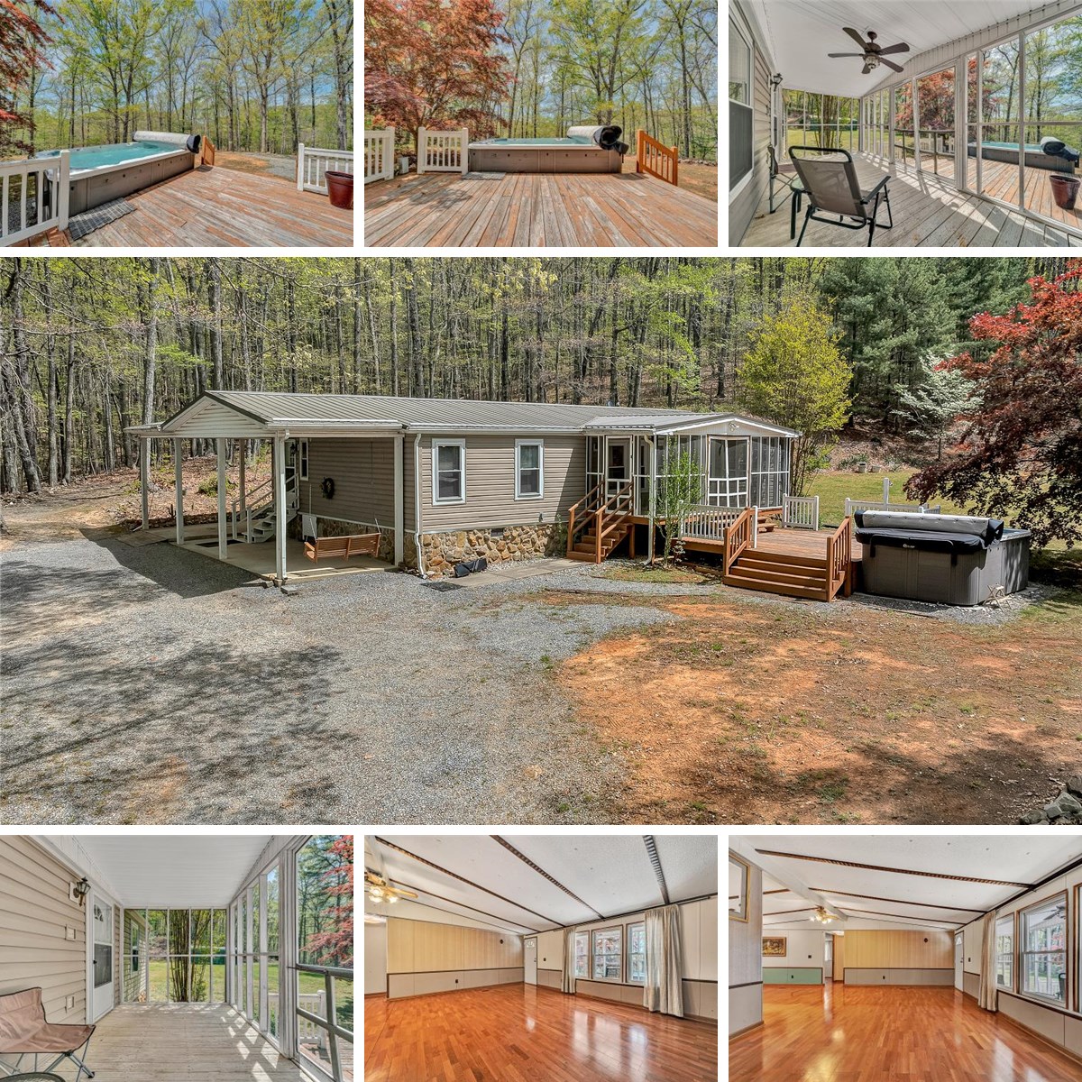10.99 Acres Bordering Jefferson National Forest - Private Retreat with Home, Direct Trail Access & Covered RV Storage. Enjoy peaceful country living on 10.99 acres backing directly to the Jefferson National Forest. This 1,372 sq ft manufactured home offers 2 bedrooms and 2 full baths, with the original third bedroom converted into a spacious laundry room/closet and extra storage space. Outdoor features include a 16x16 deck, screened porch, attached single carport, and a detached carport with space for RV storage. Large exterior sheds provide extra space for your storage needs. The property offers direct access to forest trails ideal for walking, exploring, horseback riding, or ATVs. Ideal location for outdoor fun near the James River and biking trails. Relax after a day outdoors