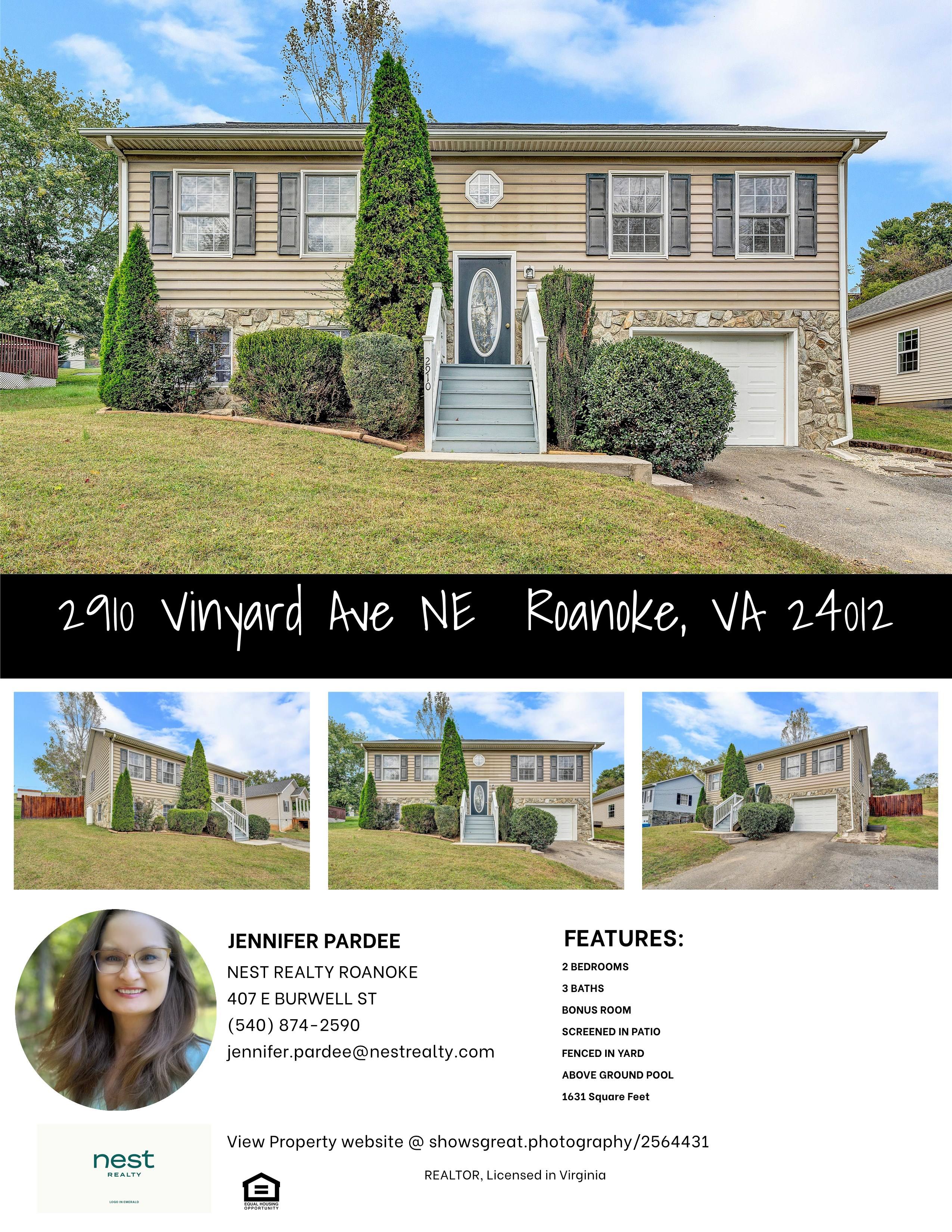 Welcome to 2910 Vinyard Rd NE, a well-maintained home in a convenient Roanoke location that blends comfort, charm, and outdoor living. Step inside to discover a warm and inviting layout with plenty of natural light and space for everyday living. This home has 2 full bedrooms and 3 bathrooms with extra room in the basement that has been used as a bedroom(no closet) and a second living area. The highlight of this property is the screened-in, covered porch—perfect for relaxing evenings, morning coffee, or entertaining guests year-round while enjoying fresh air without the hassle of bugs. Just beyond, the above-ground pool invites you to cool off on hot summer days, while the fully fenced backyard offers both privacy and peace of mind for children, pets, and gatherings.