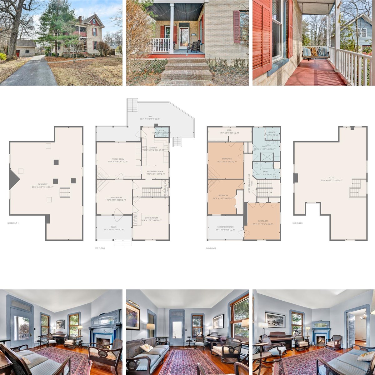 This charming 1900 brick home combines historic character with a host of modern improvements. Beautiful wood floors, updated kitchen w/quartz countertops, & renovated ceramic-tile baths highlight the thoughtful upgrades. The family room features built-in floor-to-ceiling bookshelves, & a natural-gas fireplace insert. Upstairs primary bath includes in-room laundry. There is also a screened sleeping porch & extra space ideal for a large closet. A walk-up attic provides potential for additional living area. Features include a two-car detached garage w/upper apartment, its own power meter, & EV charger. All appliances convey. Situated on a 0.31-acre lot w/paved driveway, this home's generous street setback offers a private, almost rural feel in the center of Radford's desirable Plan A neighborhood, accented by a side garden featuring a local artist's mural. Convenient to RU, VT & I-81, this unique property is only minutes from our local brewery, distillery, restaurants and more!