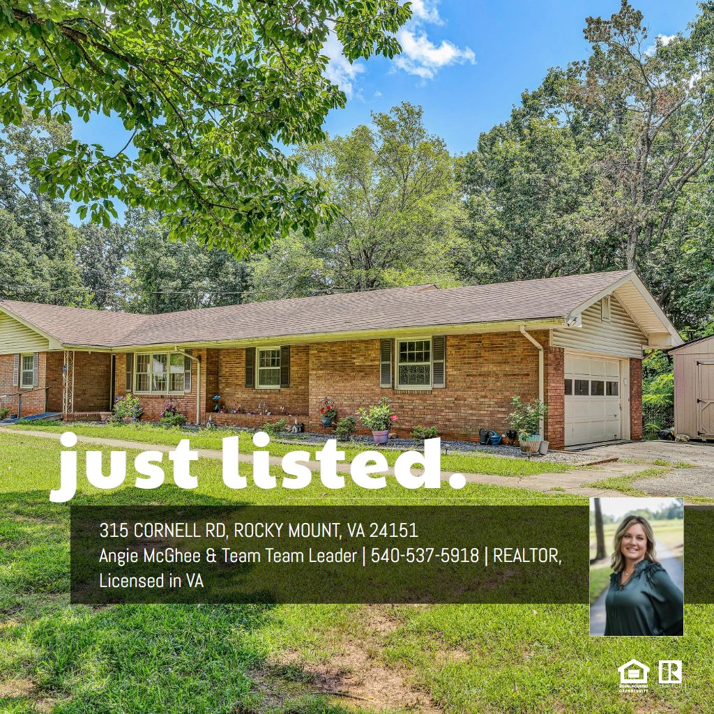 Charming Brick Rancher in Franklin Heights, 3Bed/2.1Bath Home, Super Convenient to All Amenities in the Town of Rocky Mount with Easy Access to Rt.220 for Commuting to Roanoke! NEW Flooring in Many Rooms, Spacious Floor Plan offers Kitchen Open to Breakfast Area & Den, Formal Dining Room & Large Family Room, Lots of Natural Light throughout! Lovely Covered Screened Porch, Garden space, Nice Yard with Mature Landscaping & Privacy. Mud Room & Laundry off Kitchen, 2-car Garage. Storage Shed conveys.