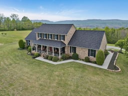 Set high above it all on 52 Acres of picturesque farmland, this exceptional property offers breathtaking panoramic mountain views. Whether you're enjoying sunrise or sunset, the scenery from both the front and rear of the home is simply unforgettable. This custom-built home is designed for comfortable main-level living. Recent updates include architectural roof 2 years old. Inside, you will find a stunning formal living and dining room, along with a spacious great room featuring a beautiful fireplace-perfect for gathering and entertaining. The kitchen is a standout with abundance of cherry cabinetry a pantry and opens to a bright breakfast area surrounded by windows to capture those incredible views. The oversized primary suite provides a private retreat with a large ensuite bath and