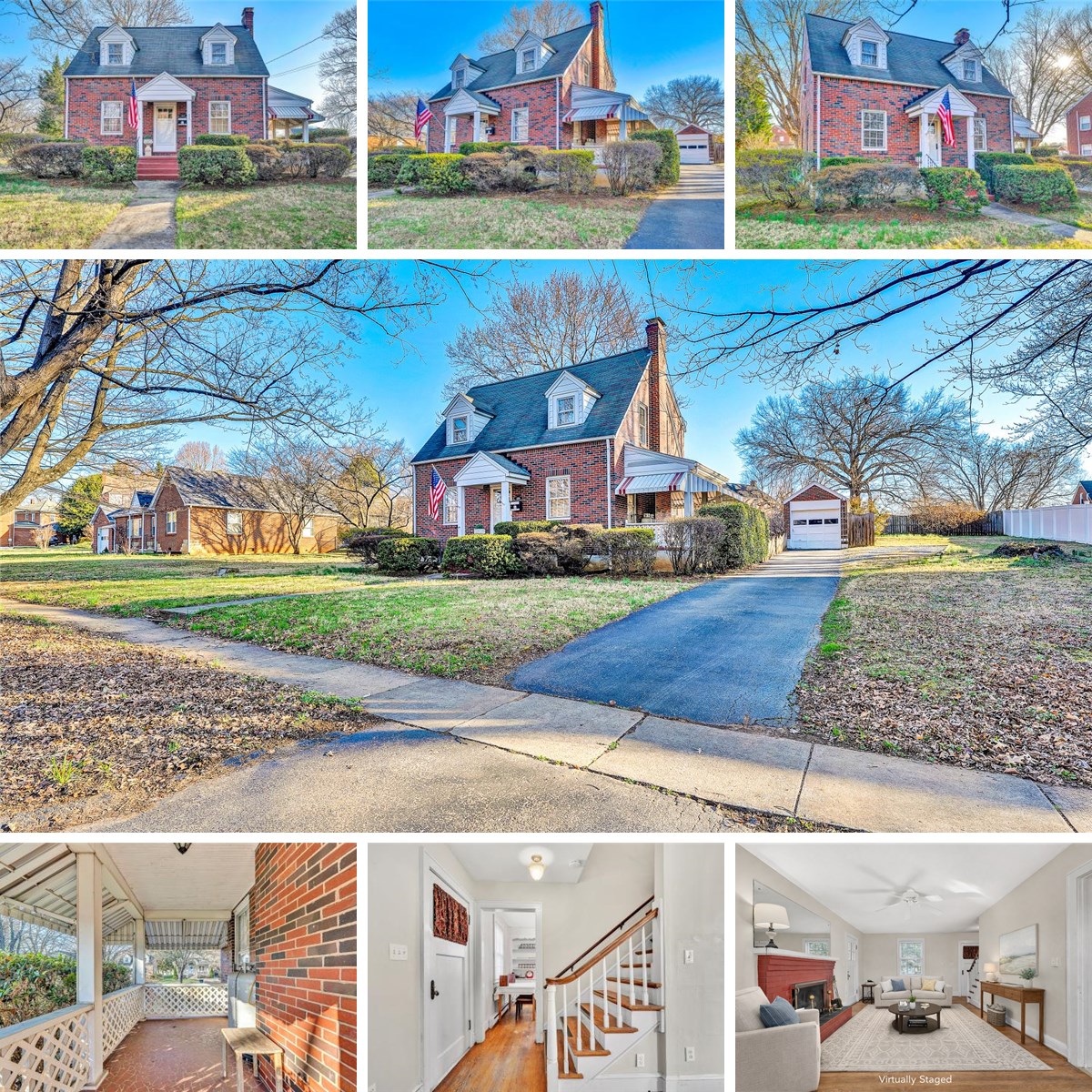 Adorable & affordable all-brick Cape Cod in a charming sidewalk-lined neighborhood! Nestled on a beautiful tree-lined street, this lovely home offers warmth, character, and plenty of potential. The spacious living room features hardwood flooring and a cozy gas log fireplace, with access to a covered side porch that is perfect for relaxing and enjoying a rainy afternoon. A large dining room with built-in shelving adds charm and functionality, while the cheerful kitchen is filled with natural light and opens to the back deck. The entry level also includes a guest bath, and upstairs you'll find three bedrooms, all with hardwood flooring, along with a full bath. The full basement offers great potential for additional finished living space. Situated on an oversized lot with a detached garage, this home is full of appeal inside and out. You'll fall in love with the street, the neighborhood, and all this home has to offer. Don't miss it!