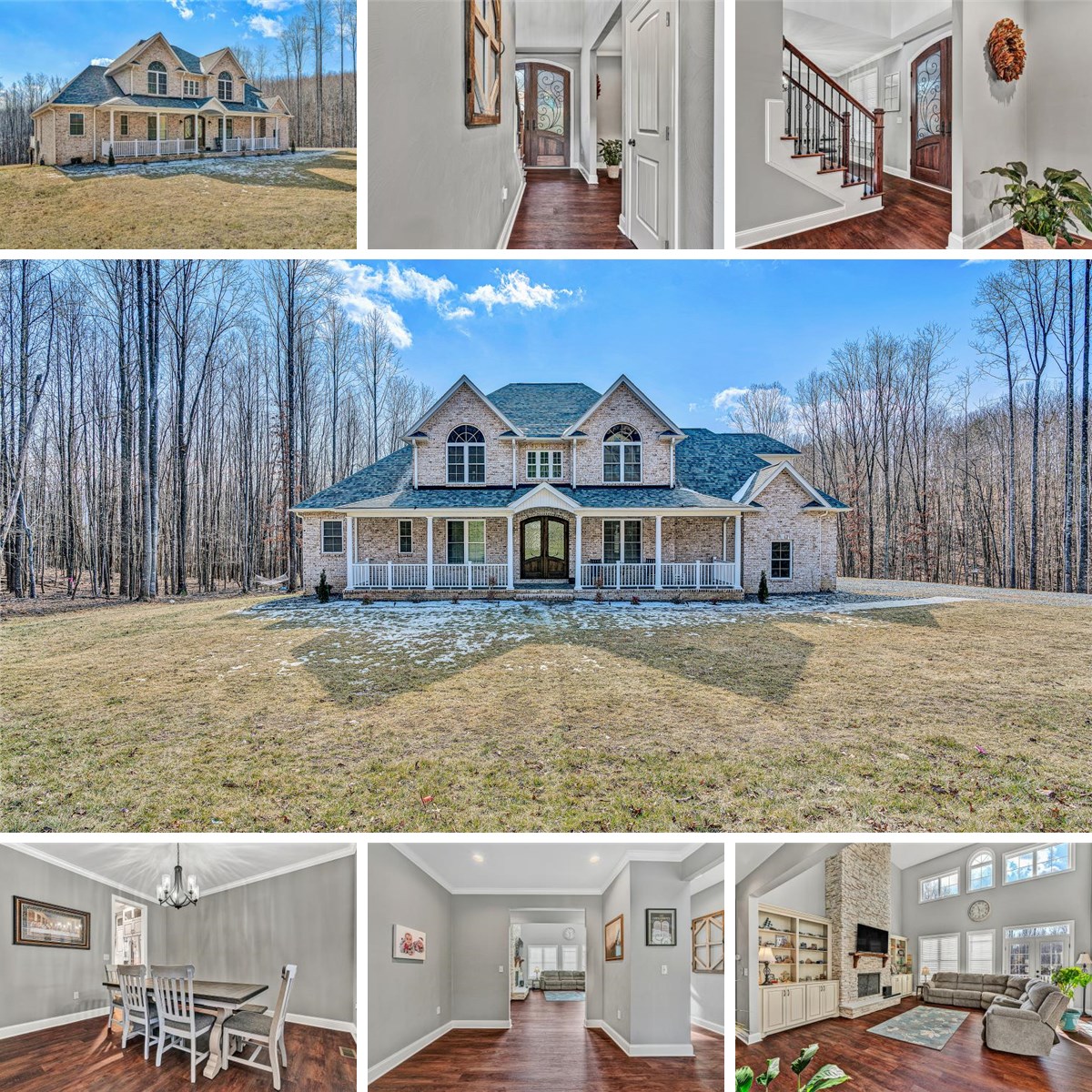 Welcome to this stunning 4-bedroom, 4.5-bathroom Farmhouse Colonial Style, boasting 4,550 square feet of living space, situated on a spacious 1.26-acre lot with breathtaking wooded views. This meticulously maintained property offers the perfect blend of comfort, style, and functionality, with high-end finishes throughout. As you enter, you'll be greeted by a grand, brick-finished exterior, luxury designer front door, and a huge front porch that invites you to relax and enjoy the serene surroundings. Step inside to find a bright and airy open floor plan, featuring huge family room area with beautiful built in bookcases, stone fireplace, luxurious vinyl plank flooring throughout the entire home. The spacious eat-in kitchen is a chef's dream, complete with granite countertops, ample custom