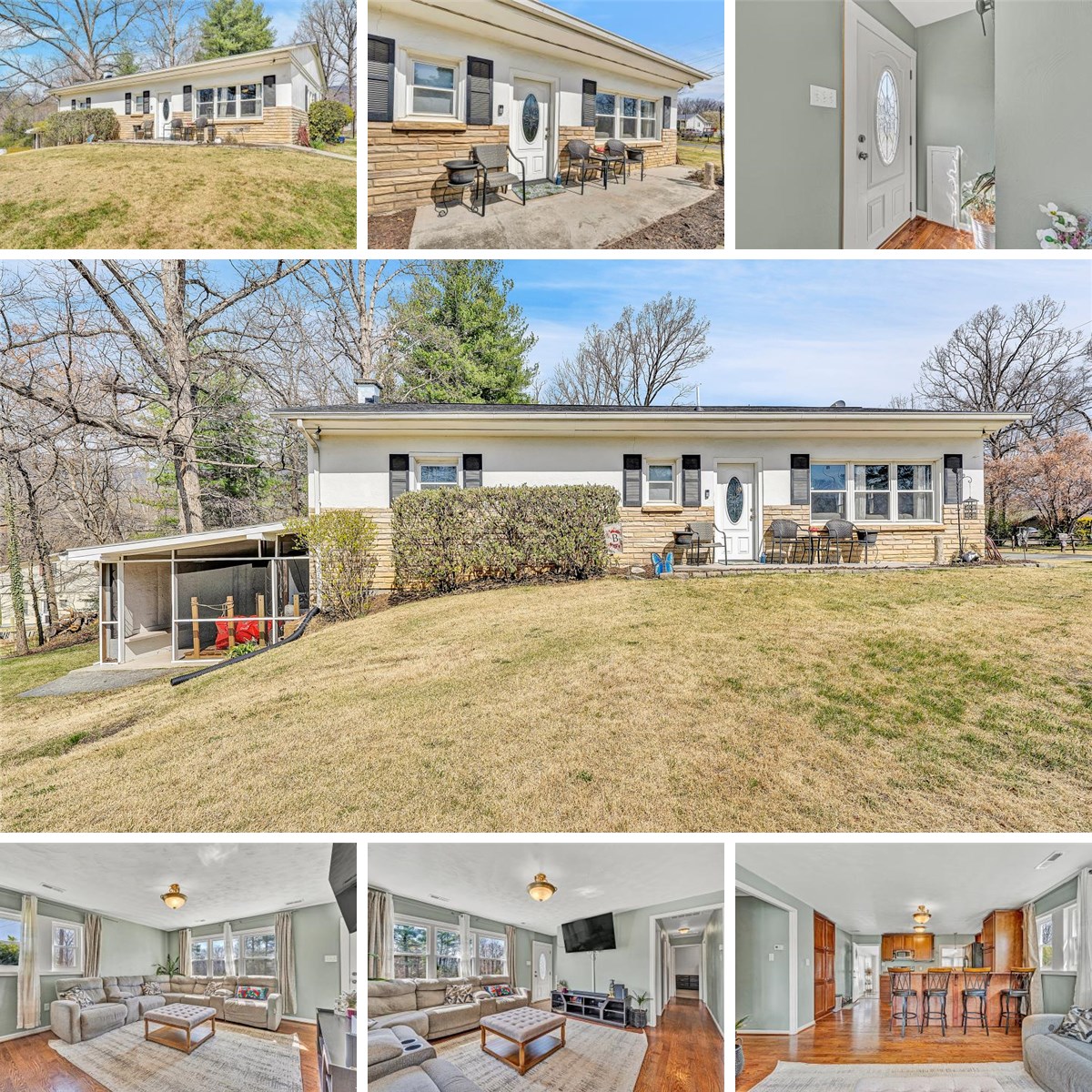 Charming 3 bedroom 1.5 bath brick ranch in tucked-away neighborhood. Totally updated in past 10 years. The roof is less than one year old. Has heat pump and insulated windows. Well and septic-septic pumped 2026. Floor plan features an open kitchen-great room layout with a sun room off the kitchen. The lower level is set up as a family room, exercise room and utility area and walks out to an additional carport currently set up as a porch area. (This area has HVAC ducted in but is not counted as finished sq ft.) The separate block garage and 2 carports are a nice bonus and convey as is. Fenced back yard ideal for pets and/or children. Dead-end street with no thru traffic. Sale includes 3 parcels.