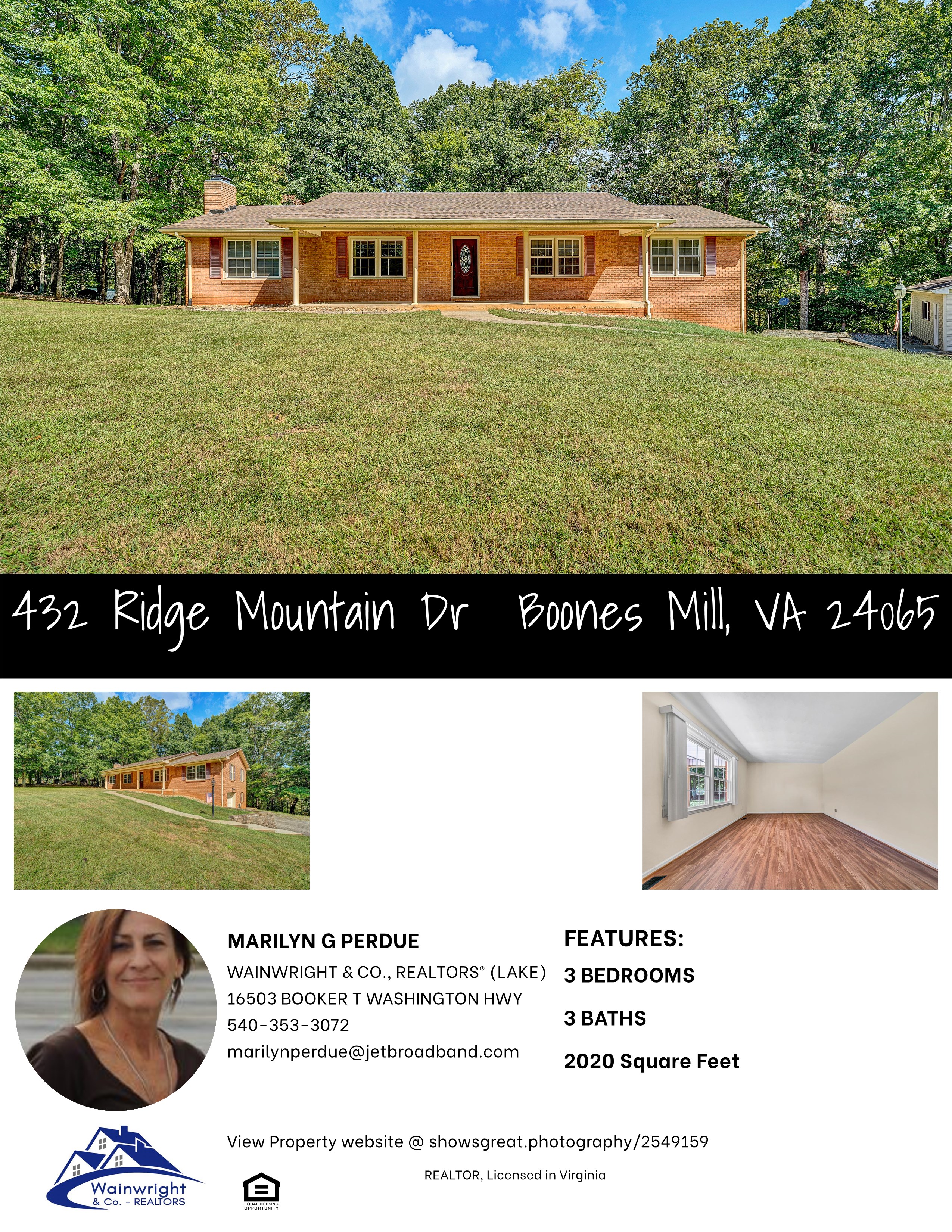 Beautiful One Owner Brick to Grade Custom Built Home in a great location . This home is on 2.44 acres and backs up to a large farm. Great Location , just 20 minutes to Roanoke or Rocky Mount via 116 or 220, and 20 minutes to Westlake! Many upgrades including Kitchen with Granite Countertops and Beautiful Cabinetry, Stainless Appliances, Smooth Top Range, Refrigerator(less than a year old). Large Family Room with Gas Log Fireplace adjacent to Kitchen. Replacement Windows, Hardwood Floors, 3rd New Bathroom downstairs and a large Laundry Room. Attached Garage, plus a large Detached Garage. The Lower Level could easily be finished with room for a 4th Bedroom and/or Recreation Room with 2nd Fireplace. Propane Tank is owned. Recent Improvements: Kitchen Remodel 2017, Heat Pump 2020, Roof 2016 Deck 2010, Carpet 2023 & 2025, Septic/New Lines 2024, Windows 2008