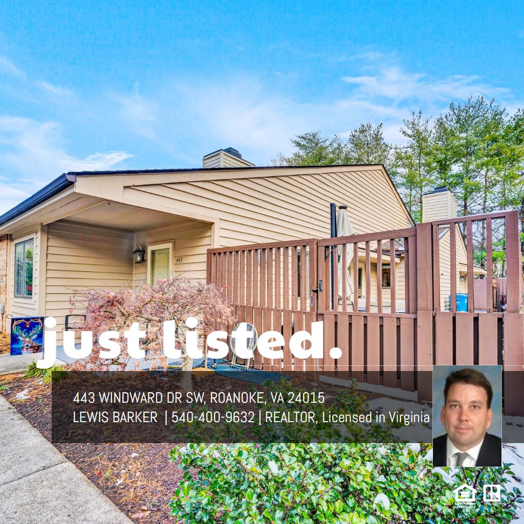 One of a kind unit in Windward Condominiums, conveniently located near Tanglewood Mall, close to grocery stores, restaurants and a short drive to Carilion, Lewis-Gale and VA Medical Center. This end unit has a southern exposure which provides an abundance of natural light and stunning sunsets! A 500 sq. ft. fenced-in patio area is great for entertaining; garden within the patio area has existing perennials & planters for annuals; fruit bearing fig tree on common area; kitchen has gas range/oven; 2 gas-log fireplaces; master bedroom & bath handicap accessible; blinds are top down, bottom up, one blind is remote control; one car garage with plenty of room for storage; pull down stairs in garage for attic storage; extra bedroom ideal for home office; cedar closet; freshly painted ext.; community pool.