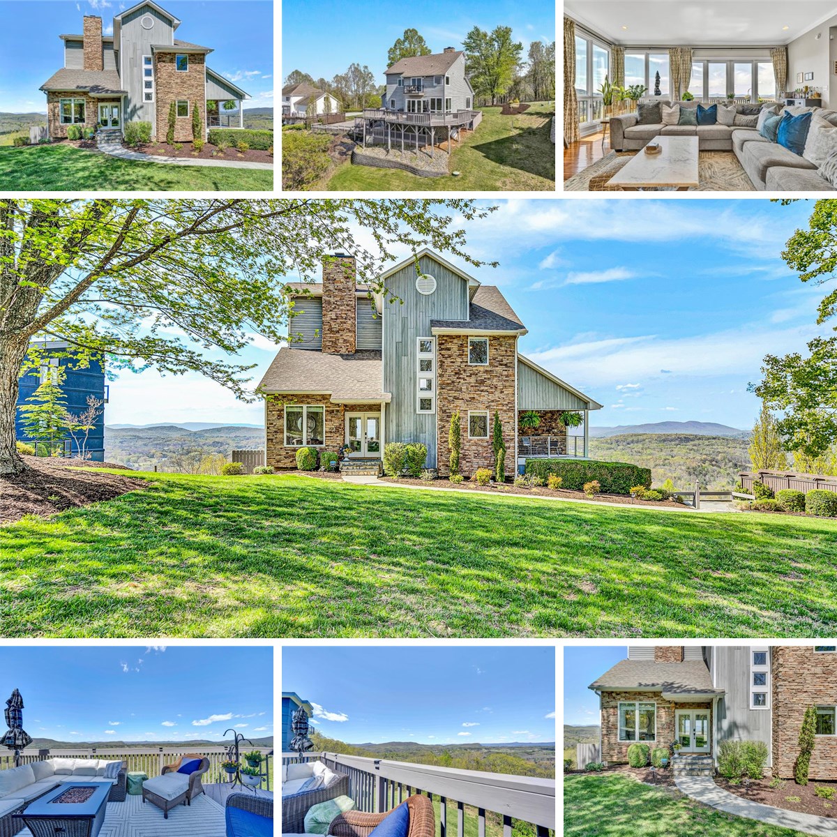 Nestled on a serene mountain ridge between Roanoke and Smith Mountain Lake, this breathtaking home offers the best of both worlds: a short, easy commute to the city and quick access to the outdoors, mountains or lake life you crave. Perfect as a primary residence or a second home, it blends comfort, space, and natural surroundings. The open floor plan showcases sweeping mountain vistas through full view sliding glass doors while flooding the home with natural light. A sunken great room adds a cozy touch with a double-sided fireplace, seamlessly connecting the dining area and living space. Step outside onto the expansive back deck to take in panoramic views—perfect for relaxing or entertaining. The primary suite boasts a walk-in closet, a private balcony and a bathroom with a tiled shower. The lower level provides flexible space, including a family room that walks out to the back deck, and an additional room that could serve as a 5th bedroom. A spacious garage with epoxy flooring and ample storage space complete this exceptional home. Don't miss the opportunity to tour this amazing property!