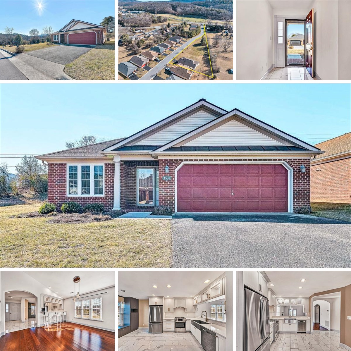 Welcome home to this highly sought-after, one-level living gem in desirable SW Roanoke County—prized for its unbeatable location, convenience, and shopping. This truly unique property sits on a generous 0.92-acre lot maintained by the HOA, offering space, privacy, and ease of living. Featuring 1,745 finished square feet, this 3 bedroom, 2 bath home boasts an open floor plan with vaulted ceilings and abundant natural light. Recent updates include brand new kitchen cabinets, solid surface countertops, tile flooring, and stainless steel appliances, along with updated baths and fresh paint throughout. Major improvements include a 2020 HVAC, 2019 Roof, custom closet organizers, and an epoxy-coated garage floor. Cozy up by the gas fireplace or relax year-round in the heated sunroom while enjoying stunning mountain views and sunsets. The exterior offers maintenance-free brick and vinyl, a two-car garage, paved driveway, and a quiet cul-de-sac setting. Move-in ready and a rare find—don’t miss this exceptional opportunity!