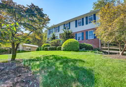 The entry level features a den, formal dining room, and an eat-in kitchen with a pantry that opens to the family room with a wall of windows and a gas fireplace. The family room leads to a screened porch with a beadboard ceiling overlooking the lush, private backyard. A hall bathroom and laundry room complete this level.