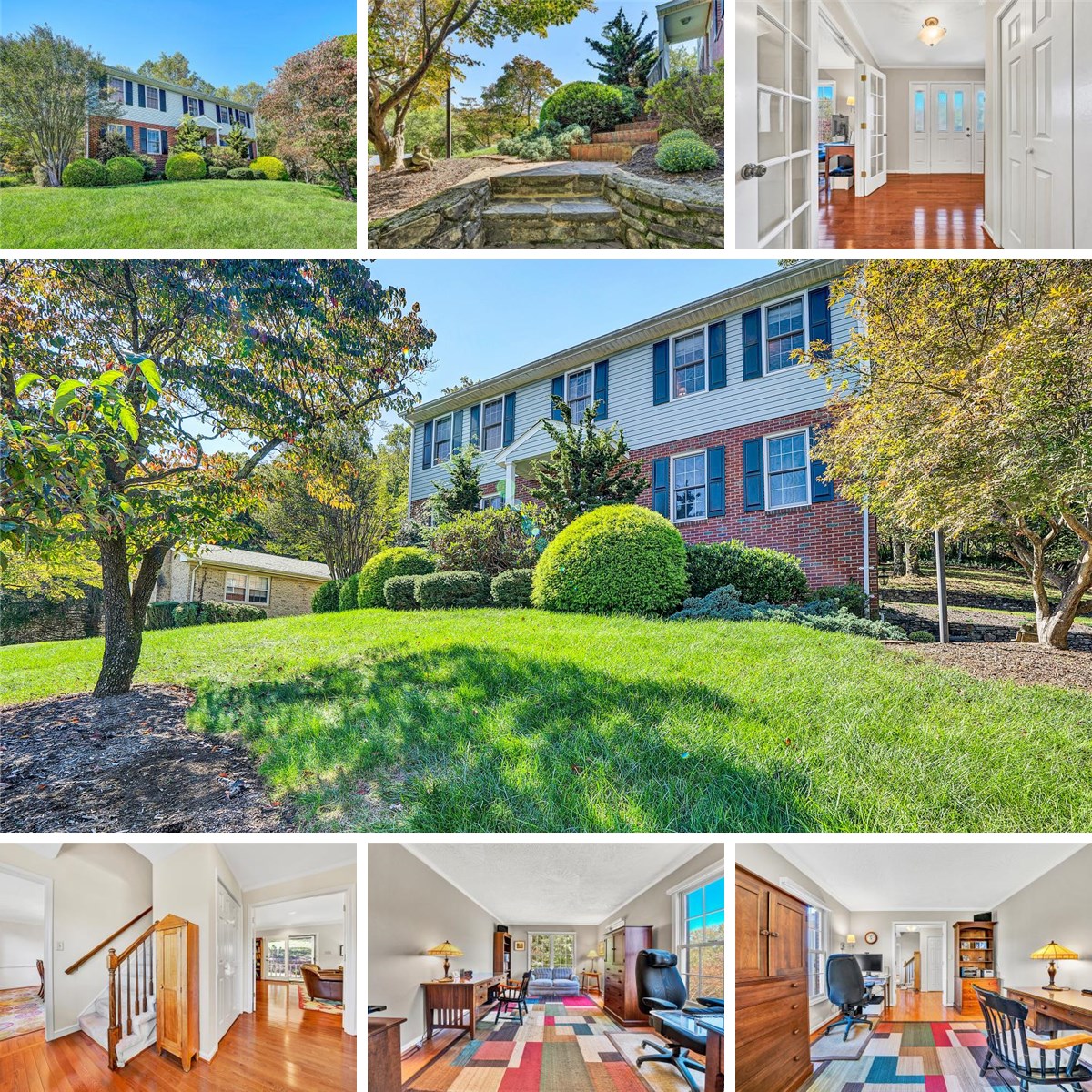 The entry level features a den, formal dining room, and an eat-in kitchen with a pantry that opens to the family room with a wall of windows and a gas fireplace. The family room leads to a screened porch with a beadboard ceiling overlooking the lush, private backyard. A hall bathroom and laundry room complete this level.