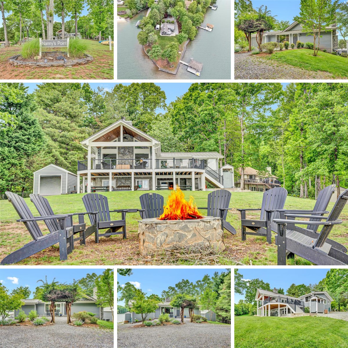 Beautiful Lake Home Nestled on a Gorgeous POINT LOT w/297 ft of Waterfront at the 795 Contour. See the sunrise with incredible mountain & wide water views from the covered porch! Covered Boat dock with Storage Cabana In 2015/2016 the home was gutted, reinsulated and received new Hardy fiber-cement siding, doors and windows, the interior was rebuilt with a new floor layout design, new hardwood flooring & stained spruce ceiling installed throughout main level, new kitchen and 2 new full bathrooms, lower level ceramic tile flooring & new heat pump. In 2019/2020 a beautiful 2-story 20x16 addition was constructed with a new raised roof line, new metal roofing, hard flooring including a vaulted wood ceiling. In 2022 a custom bar w/bar refrigerator, prep sink,2nd dishwasher & wine cool