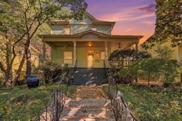 Charm and character shine at 519 Woods Ave in Old Southwest! Nestled on a tree-lined street perfect for evening strolls and just minutes from beautiful Downtown Roanoke, this home is full of warmth, style, and inviting spaces. Relax with your morning coffee on the lovely wraparound front porch and enjoy all the charm this special home has to offer. The entry level features a spacious living room with a gas log fireplace, beautiful hardwood floors, a separate den/family room, and a formal dining room that is ideal for entertaining. The kitchen offers cherry cabinets, tiled backsplash, newer stainless steel appliances, and French doors leading to the back deck. A separate laundry room and guest bath add convenience to the main level. Upstairs, the gorgeous Primary en suite is