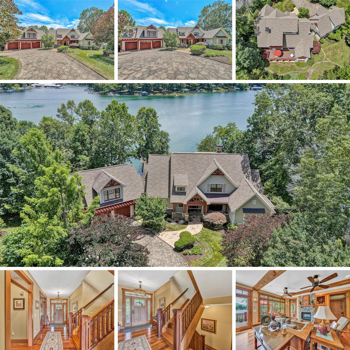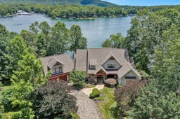 Exquisite Craftsman Home with spectacular mountain vistas and luxury amenities. Step inside and be captivated by the warmth and character of hand-sawn pine beam ceilings and hand-scraped Oak and Heart of Pine flooring that extend throughout the residence. Every corner reveals meticulous craftsmanship. The kitchen is a culinary masterpiece, featuring a Wolf Commercial Grade propane range with an electric oven, beam ceilings, and a striking slate and metal backsplash. Entertain with ease in the climate-controlled wine cellar, boasting a remarkable 1500-bottle capacity and an inviting tasting room. Lower level includes a second kitchen for your entertaining needs and you can indulge in the ultimate relaxation with your private sauna and exercise room. A 2-slip dock awaits, complemented by a beautiful sandy beach-perfect for swimming, sunbathing, and enjoying the tranquil surroundings. This property boasts practical upgrades for peace of mind, including two Rinnai propane hot water tanks, a reliable generator and HVAC systems for upper and main floors upgraded in 2018. A 1000-gallon buried propane tank ensures ample supply. An optional club membership offering an array of amenities such as golf, pickleball, tennis, swimming, equestrian activities, exercise facilities, and dining. Please note: a club initiation fee of $35000.00 is due within 30 days of closing and will be paid by the purchasers.