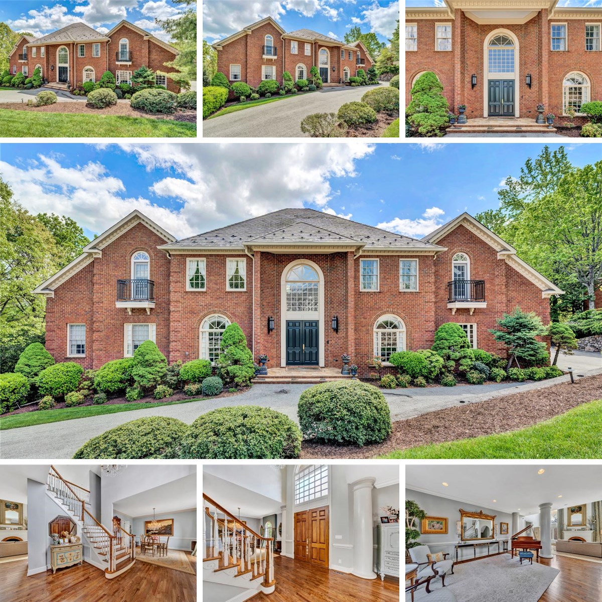 Gorgeous brick Georgian style home situated on one of Hunting Hills' highest peaks. Stunning mountain views will remind you of how much you love living here. Extensively renovated over the past 9 years, this majestic beauty offers an unparalleled blend of comfortable living, timeless elegance and modern conveniences. The redesigned gourmet kitchen is equipped with marble countertops, high-end cabinetry, professional grade Thermador and SubZero appliances plus a perfectly placed pantry that helps with organization of goods & smaller appliances. A new expanded Mud room off the kitchen transitions to a Large double car garage with a third bay for easy access storage of sporting equipment or hobby supplies. The welcoming foyer is flanked by an exquisite Living Room and generous Dining Room, this main entrance level also features a spacious Primary Suite with multiple closets (2 walk ins) and a spa - like bathroom that was meticulously renovated with Marble Tile flooring, soaking tub and a 67 1/2 " X 53 1/4 " walk in shower with Marble bench & mosaic floor. The substantial entry level Family Room has a soaring 2 - Story ceiling with oversized windows that welcome a flood of natural light.Meticulously maintained hardwood floors throughout much of the main level, then new hardwood flooring was extended throughout the upper-level bedrooms (Second Primary Suite with a huge, refreshed bathroom) and cool loft area that offers additional space for relaxing and enjoying the panoramic vistas. The upper-level laundry has top of the line Electrolux washer & dryer set and a deep cast iron sink with new Granite countertop. Finally there is a large, finished walk out basement with the same high ceilings found throughout the house, complete with an oversized family room ,a second Masonry fireplace and a huge bank of bookshelves & cabinets , a fifth bedroom with walk in closet, a full bath, office with walk in closet, two sets of sliding doors that lead to a covered Trex Deck, added bonus is this level's private garage making it perfect for multi-generational living, an au pair or nanny.
