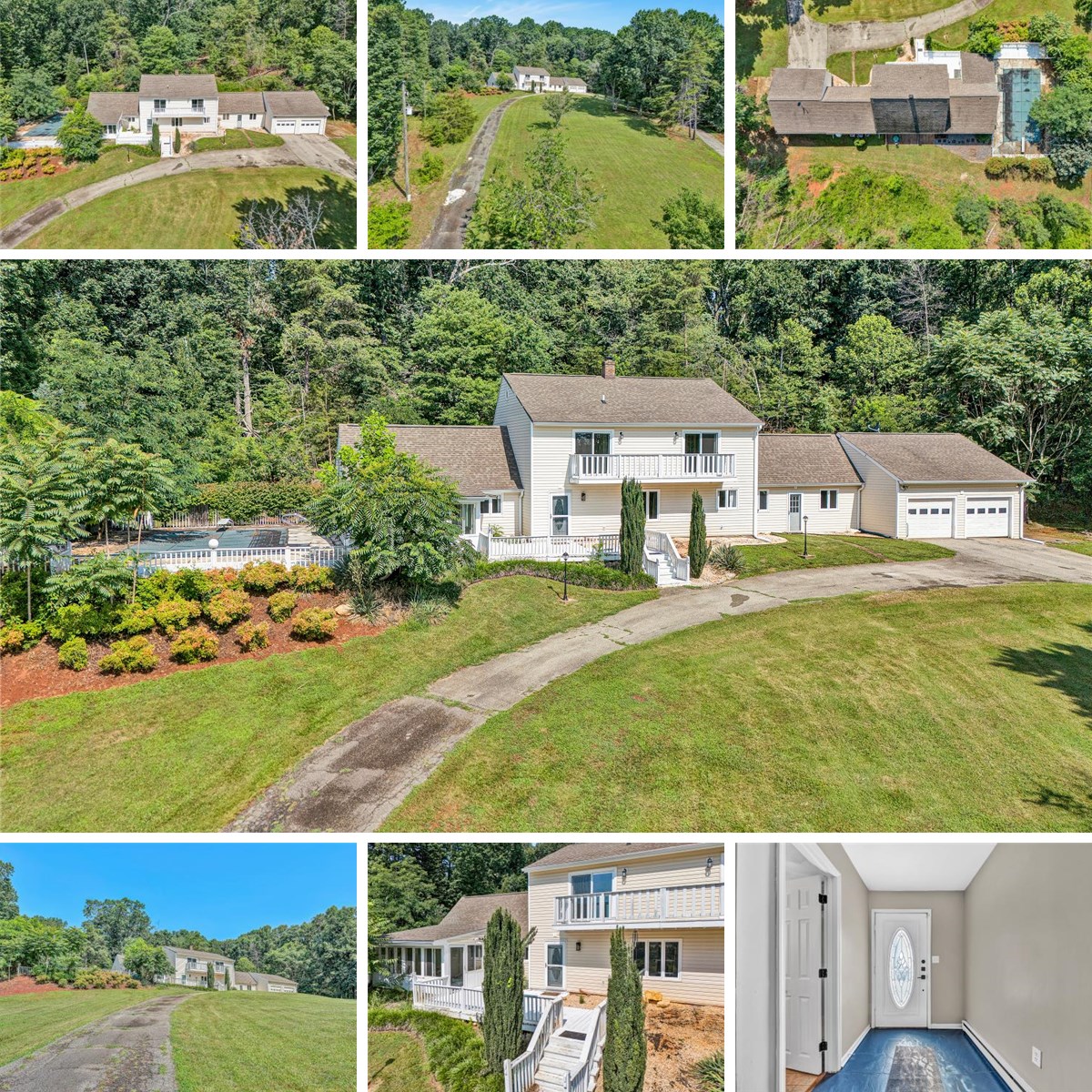 Discover your own slice of countryside living on 5 acres with this spacious home with beautiful mountain views. The home offers over 2500 sq ft of living potential. With some TLC, this property can truly shine. Featuring an 18X36 in-ground swimming pool with decking, sunroom, cathedral great room, and open-concept kitchen, dining, and great room. Conveniently located within 20 minutes to Roanoke and SML. Updates include: Pool liner, pump and filter replaced in 2023, septic pumped in 2023, main area heat pump replaced in 2022, 2 energy efficient sliding doors upstairs, 2 energy efficient windows in LVV, garage door openers, water heater, carpeting throughout, new garage door openers, and interior paint. Original garage could be use as a 5th bedroom or den/game room.