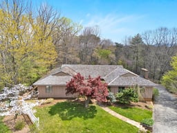 First time on the market! Rare chance to be at the top of the hill with a view in this one-of-a-kind home overlooking the mountains and Roanoke Valley. Set on a private .67 acre wooded lot at the end of a cul-de-sac, this stunning cedar-sided ranch with 3,877 sqft and 4 bedrooms. New cedar roof in 2022. The fenced backyard features a custom pool, flagstone paver deck and multiple entertaining areas. Huge eat-in-kitchen with granite island, pantry and sliders to new deck. One-owner home full of historic character. Foyer with stone floor and arched entryway, large great room with stacked stone gas fireplace, midcentury wallpaper, and original details throughout. All bedrooms are spacious! The private primary suite has 2 walk-in closets and bath. Convenient access to laundry in half bath on main floor. Downstairs offers a bonus family room with gas log fireplace, built-in desk and shelving perfect for home office, workshop, plentiful storage space, mudroom and 2-car gara