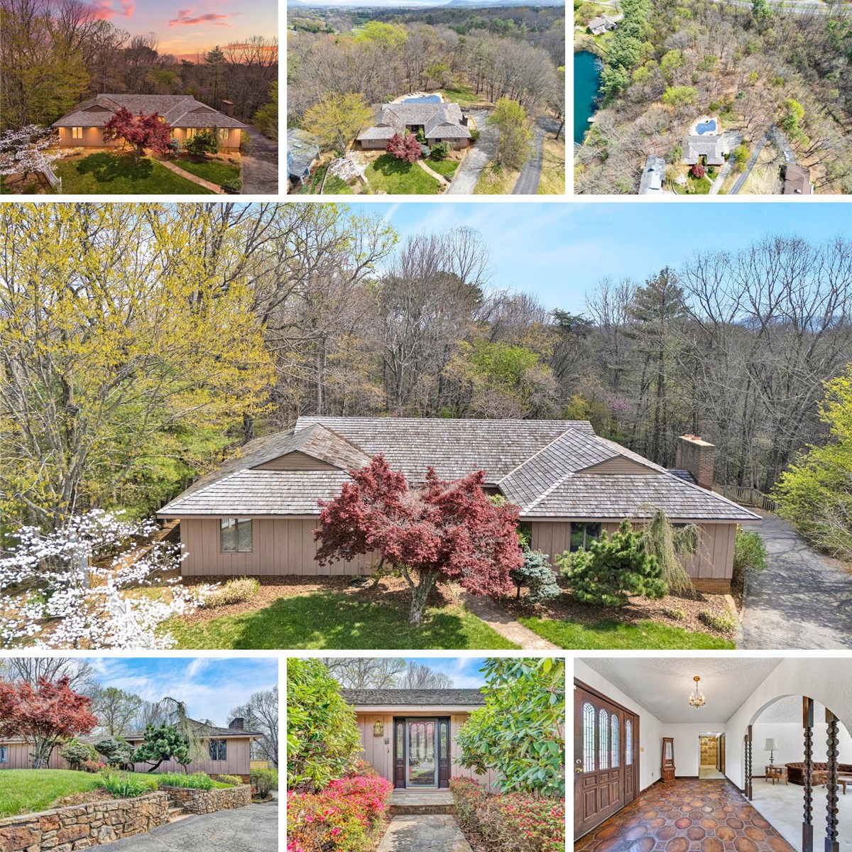 First time on the market! Rare chance to be at the top of the hill with a view in this one-of-a-kind home overlooking the mountains and Roanoke Valley. Set on a private .67 acre wooded lot at the end of a cul-de-sac, this stunning cedar-sided ranch with 3,877 sqft and 4 bedrooms. New cedar roof in 2022. The fenced backyard features a custom pool, flagstone paver deck and multiple entertaining areas. Huge eat-in-kitchen with granite island, pantry and sliders to new deck. One-owner home full of historic character. Foyer with stone floor and arched entryway, large great room with stacked stone gas fireplace, midcentury wallpaper, and original details throughout. All bedrooms are spacious! The private primary suite has 2 walk-in closets and bath. Convenient access to laundry in half bath on main floor. Downstairs offers a bonus family room with gas log fireplace, built-in desk and shelving perfect for home office, workshop, plentiful storage space, mudroom and 2-car gara