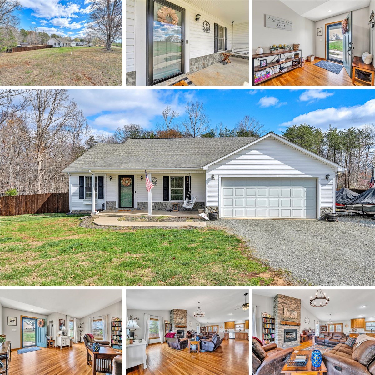 A home is a source of comfort, stability, security, and hope, and this residence embodies all of these qualities. From the moment you step onto the inviting rocking chair front porch and through the front door, you are welcomed by soaring cathedral ceilings and a floor-to-ceiling stone fireplace, complemented by an-open concept layout designed to make entertaining effortless. The newly installed privacy fencing in the backyard provides ample space for recreation, gatherings, or any personal pursuits. A charming chicken house, which does not convey with the property but is negotiable with the purchase. This home offers 3 bedrooms, 2, and a seamless flow from one room to the next. Additionally, it features a spacious two-car garage and enjoys convenience to Rocky Mount, Roanoke and Smith Mountain Lake. Many updates have been undertaken on this lovely home including a new storage building with loft measuring 20x10, less than a year-old privacy fence, hardwoods, extended driveway and recent septic inspection with pumping, gas logs serviced this winter as well as 50 AMP outlet for camper hook up installed 2025. All appliances convey including washer and dryer. New dishwasher 2023 and new refrigerator 2024. Make this home yours asap.