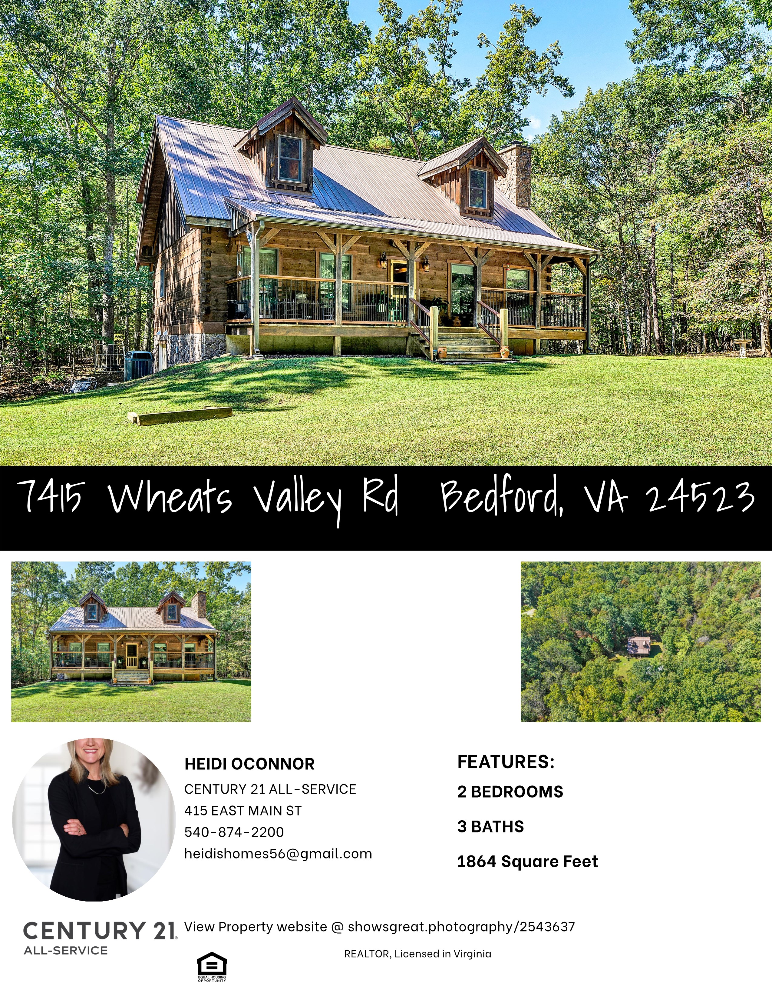 This 2-bedroom (3-br septic), 3 full bath hand-hewn log cabin sits on 4.95 private acres near the Peaks of Otter, just minutes from the Jefferson National Forest, the Blue Ridge Parkway, and the historic Town of Bedford, Virginia. The home features vaulted ceilings, exposed log walls, and an open living and dining area with a stone fireplace. The kitchen offers modern convenience while maintaining rustic charm. Each bedroom is generously sized, and three full baths provide added comfort for family and guests. Outdoor living includes a rocking chair front porch and wooded acreage ideal for exploring or simply enjoying the peaceful surroundings. This property offers flexibility as a full-time residence, vacation home, or potential short-term rental. Its location near hiking, fishing, canoeing, boating, wineries, and scenic parkway drives makes it a desirable retreat with strong rental appeal.