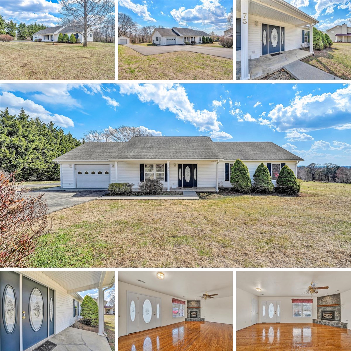 Beautiful Contemporary Ranch on a beautiful almost level lot. Large Open Great Room with Stone Gas Log Fireplace. Spacious Open Kitchen and Dininig Area. Beautiful Hardwood Floors, newly refinished,Double Doors leading to a 10x22 Screen Porch, Primary Ensuite with Walk in Closet, Two Guest Rooms, Full Bath with Whirlpool Tub. 6x22 Covered Front Porch, Attached Garage and a Detached Garage. Convenient Location near Burnt Chimney Corner., Rocky Mount, Westlake and Roanoke.