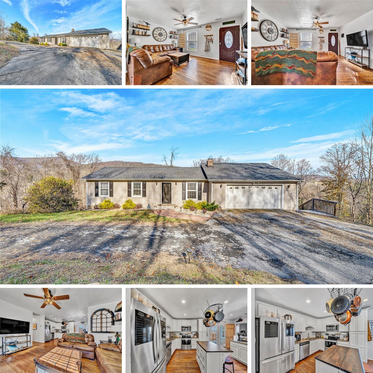 Discover a private 3.19 acre retreat just minutes from town with this beautiful 4 bedroom 2 bath ranch home. The main level features hardwood floors, a bright open kitchen with granite countertops and a spacious living area. Enjoy exceptional outdoor living with bi-level decks, perfect for entertaining or relaxing in the hot tub overlooking the wooded and mountain views. The finished lower level adds flexible living space with multiple rooms and a full bath, ideal for family room, guest rooms, home office or gym. Additional features include an attached 2-car garage, brand new heat pumps, new water heater, fenced yard for the pups and beautiful natural surroundings.