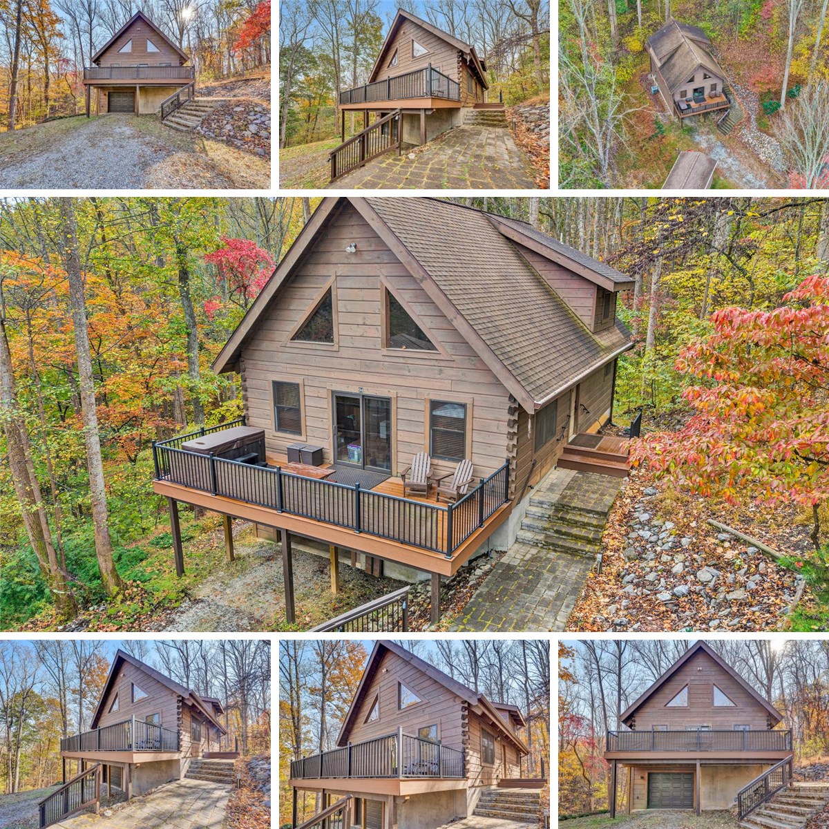 Experience rustic elegance & serene living in this stunning custom-designed milled wood chalet style cabin near Smith Mountain Lake. The vaulted pine ceilings & open floor plan create a warm, spacious feel perfect for for entertaining. Enjoy a peaceful, wooded setting w/abundant wildlife & easy access to the community dock & boat ramp. Cathedral ceiling w/open floor plan, stainless steel appliances, & granite counter tops. Features include two en suite bedrooms w/large walk-in closets, whole-house vacuum, & attached one car garage & separate RV garage, plus your own private hot tub. Deck has new Trex decking & RDI railings. Half bath & laundry room combination has furniture-style vanity topped w/charming metal wash pan. Unfinished basement has room for you to add more living space. Recent updates: Trex decking (2025), RV/Boat garage (2022), new HVAC (2021), & fresh exterior stain (2025). Community area includes boat dock & ramp, picnic area, and tennis courts.