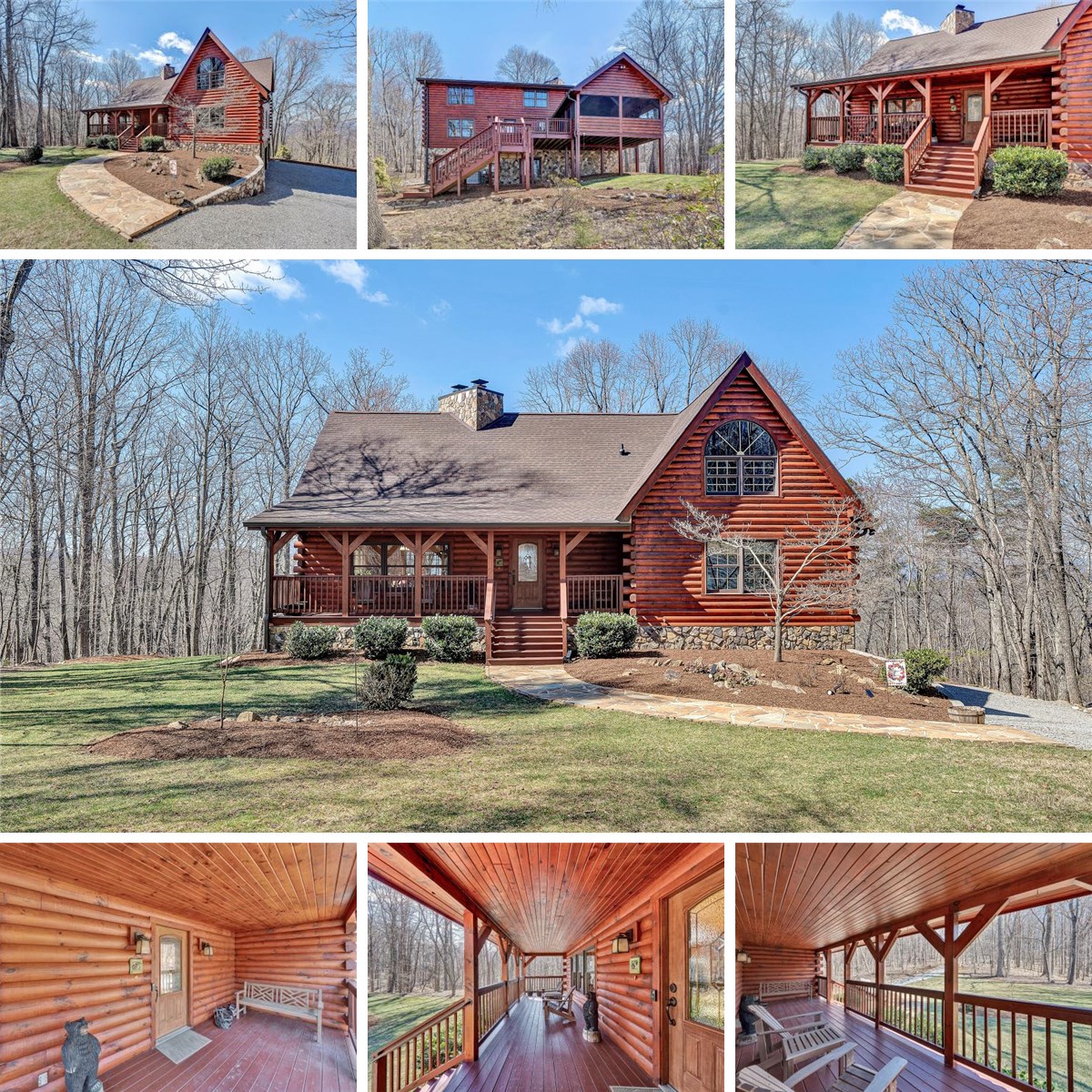Exquisite 1½-story log home set stately on 5.78 scenic acres in Roanoke County Designed to embrace the surrounding landscape and spectacular sunset mountain views. Inside. the home welcomes you with a dramatic great room centered around a striking masonry fireplace. The main level offers two bedrooms, including the primary suite for convenient first floor living. The second level offers a spacious loft with a 2nd fireplace - an inviting space for a sitting area or reading retreat - along with a private 3rd bedroom, perfect for guests. Enjoy outdoor living on the newly replaced deck (2023) positioned to capture stunning mountain sunsets or enjoy morning coffee. Recent improvements include a New roof (2022) and whole-house generator. Oversized 2-car garage. Unfinished basement with rough-in for full bath offers excellent expansion potential. Furry friends will feel right at home with a Invisible fence already in place--giving your "furbabies" the freedom to roam safely while you enjoy peace of mind! This home is a rare opportunity to enjoy privacy, views and timeless mountain charm all within easy reach of Roanoke County amenities.