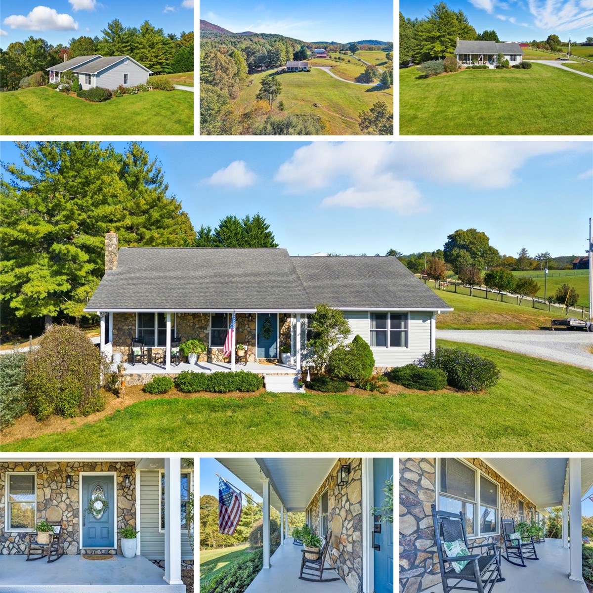Welcome to our farmette on 6 acres w/ a stream, gorgeous mountain views & fiber internet! This one-owner custom-built home by GFW Construction offers great potential for multi-generational living. Each floor offers a primary suite, as well as laundry on both floors. The entry floor has been updated with LVP flooring, quartz counters in the kitchen & bathrooms. The basement has an open joist ceiling & features a large open family space as well as preparations for a kitchenette. Electrical line for the range has been run, cabinets/countertops have not been affixed but do convey. Several of the basement rooms are flex space and could certainly be used in a different manner than present use. There is a concrete room under the porch. This area could be a safe room. It has been divided in half & the second half has previously been used as a cold room for curing meat and later as a plant room for growing. Outside you have a 20x40 detached carport on a 6" slab. There are several fruit trees, a berry patch, a concord grape vine, raised garden beds, & lots of pollinator plants. Wired Lorex security cameras 4K Ultra HD. This is a very efficient home with an Average Electric Bill of $235/mo using the wood stove as the primary source of heat in the winter months. Exterior power inlet for portable generator. 10 Mins from the stop light in Boones Mill. OWNER/AGENT.